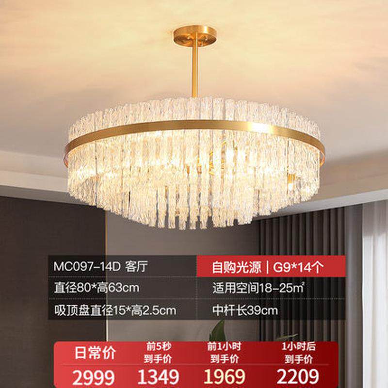 后现代轻奢吊灯水晶客厅灯简约大气全铜高档餐厅灯饰卧室北欧灯具