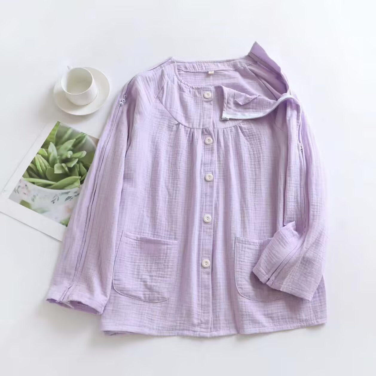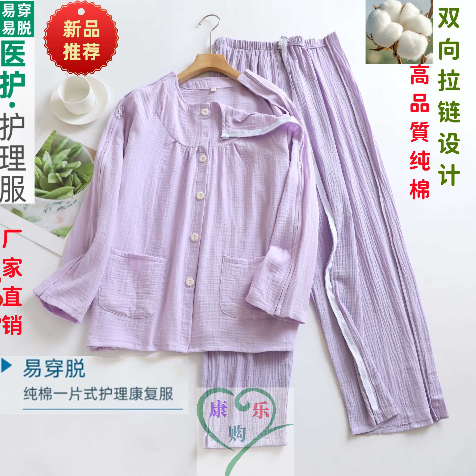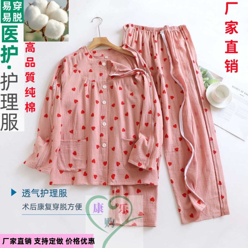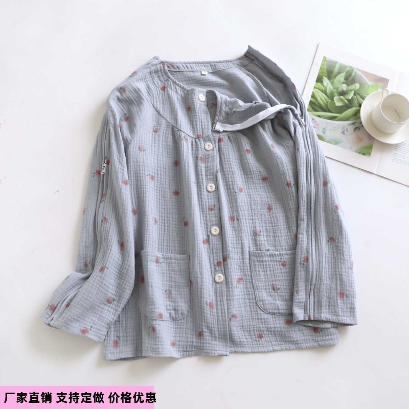 秋高品質全棉棉纱全开护理服骨折卧床老人失禁瘫痪易穿脱衣服针灸