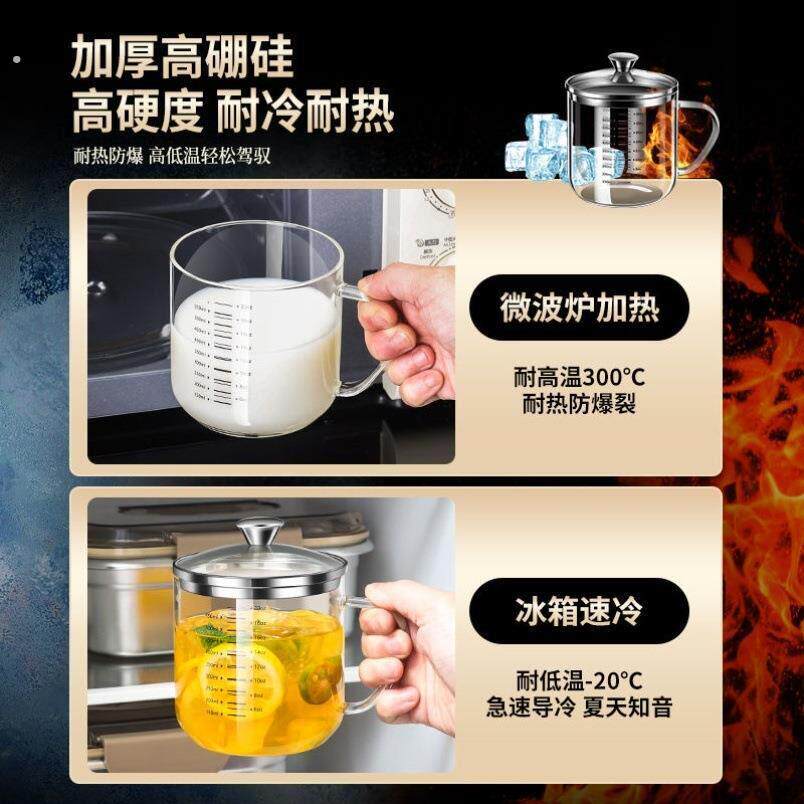 德国高硼硅玻璃双刻度杯子透明耐高温计量杯带盖子茶杯喝水杯玻璃