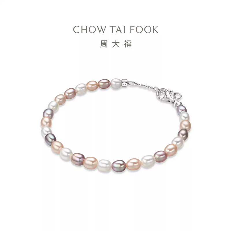 周大福多巴胺DIY叠戴彩色淡水珍珠银扣手链T82895送女友礼物