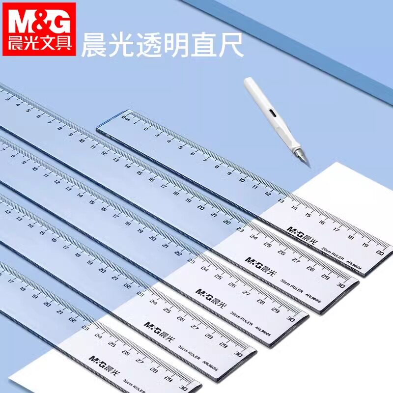 晨光透明尺直尺20cm透明加厚塑料直线尺学生用公务员考试学习文具考试学习用品办公用品30cm尺子透明直线尺子