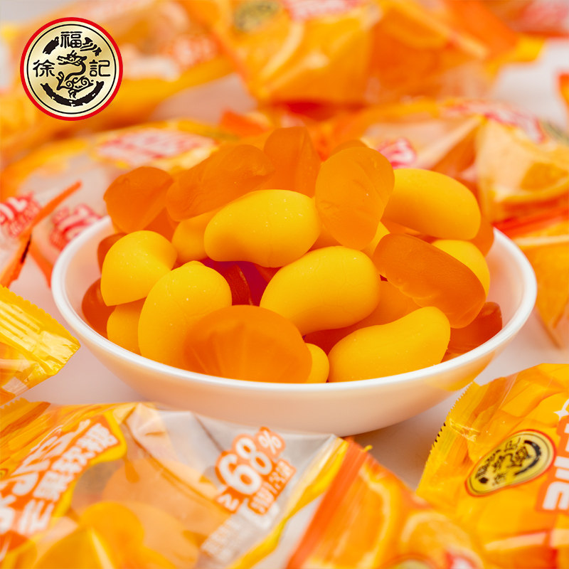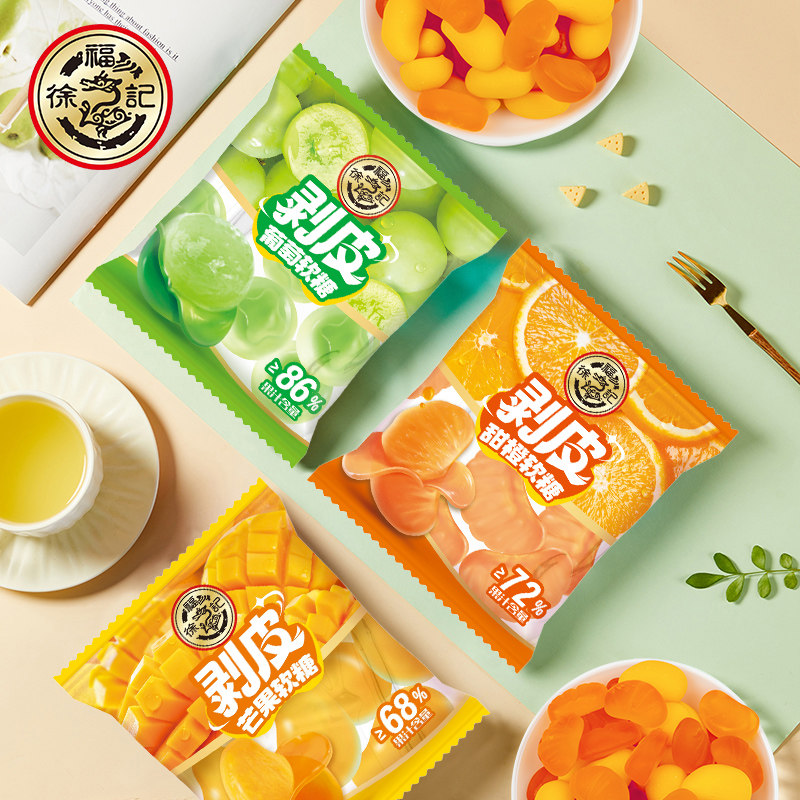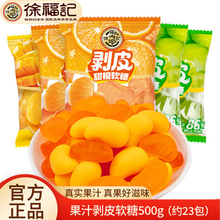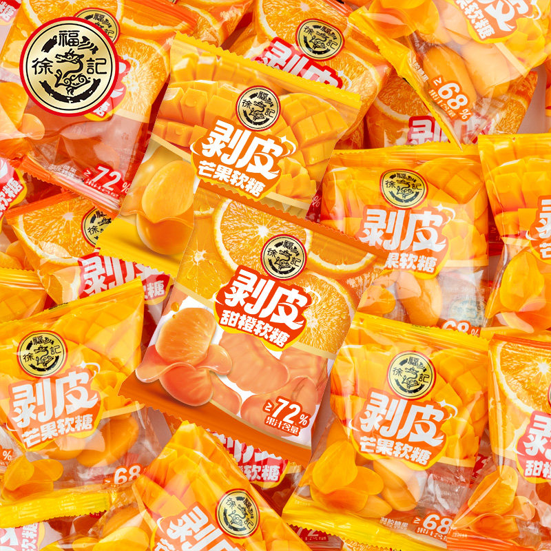 徐福记剥皮软糖500g芒果甜橙葡萄味扒皮糖休闲零水果汁食橡皮糖