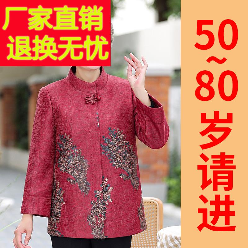 奶奶春装呢子上衣60岁70中老年人妈妈春秋天唐装外套80老太太衣服