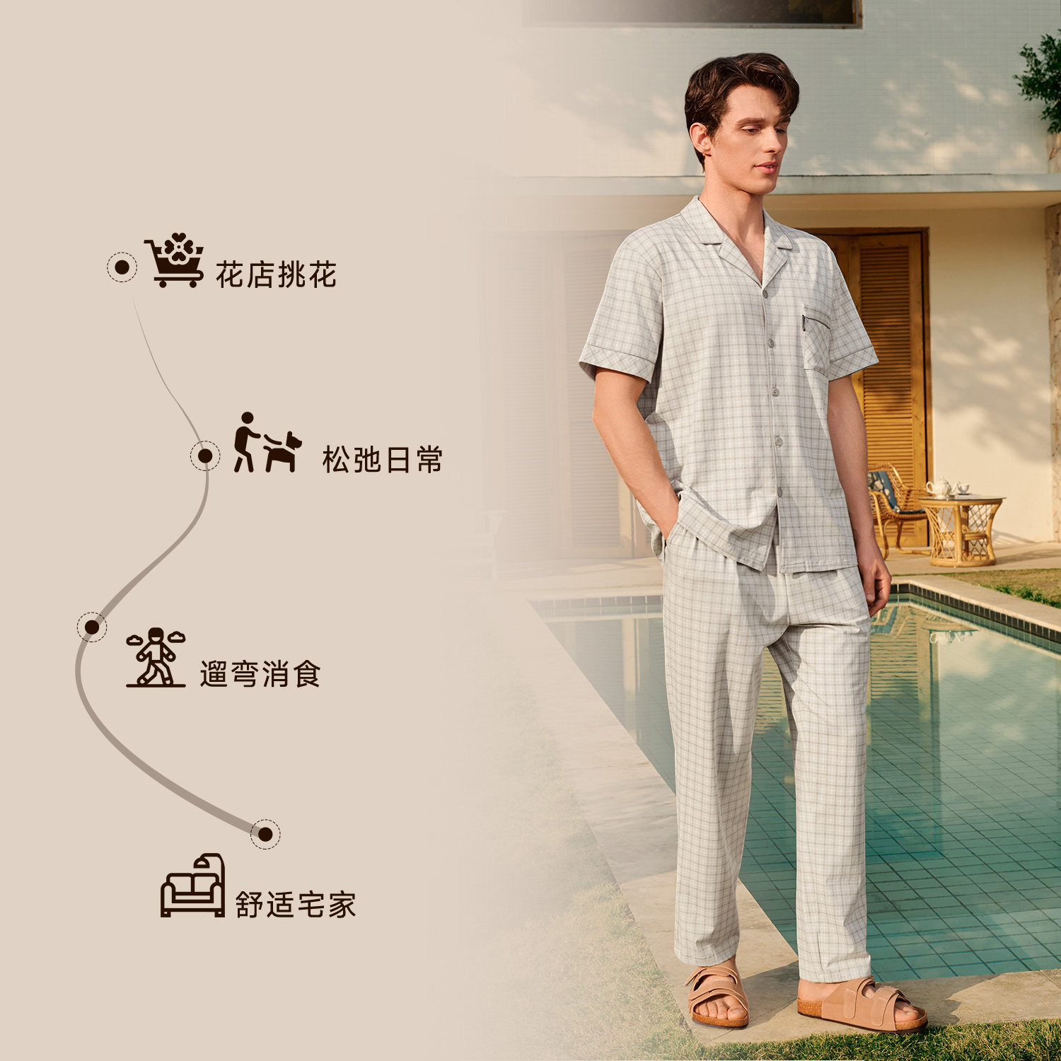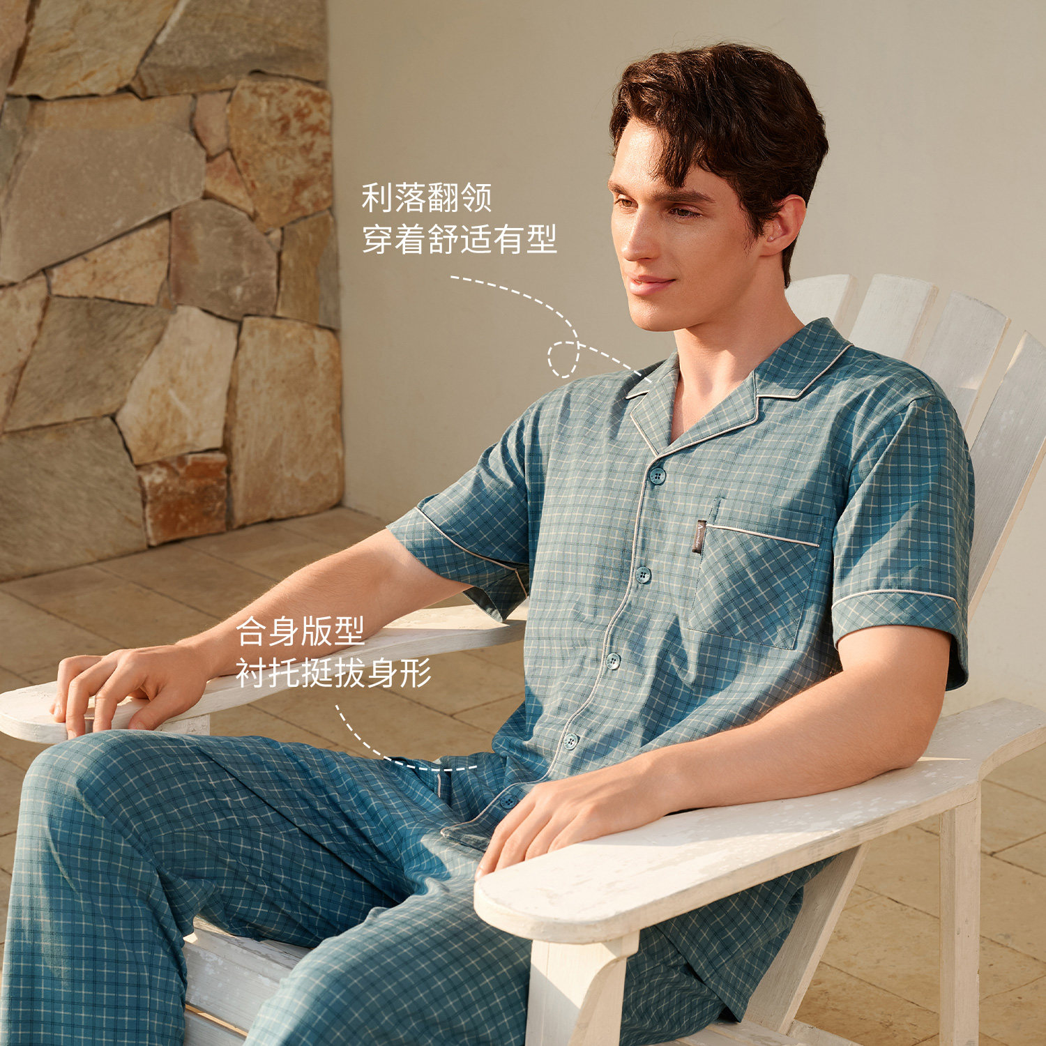 10A抗菌睡衣男士,短袖长裤薄款