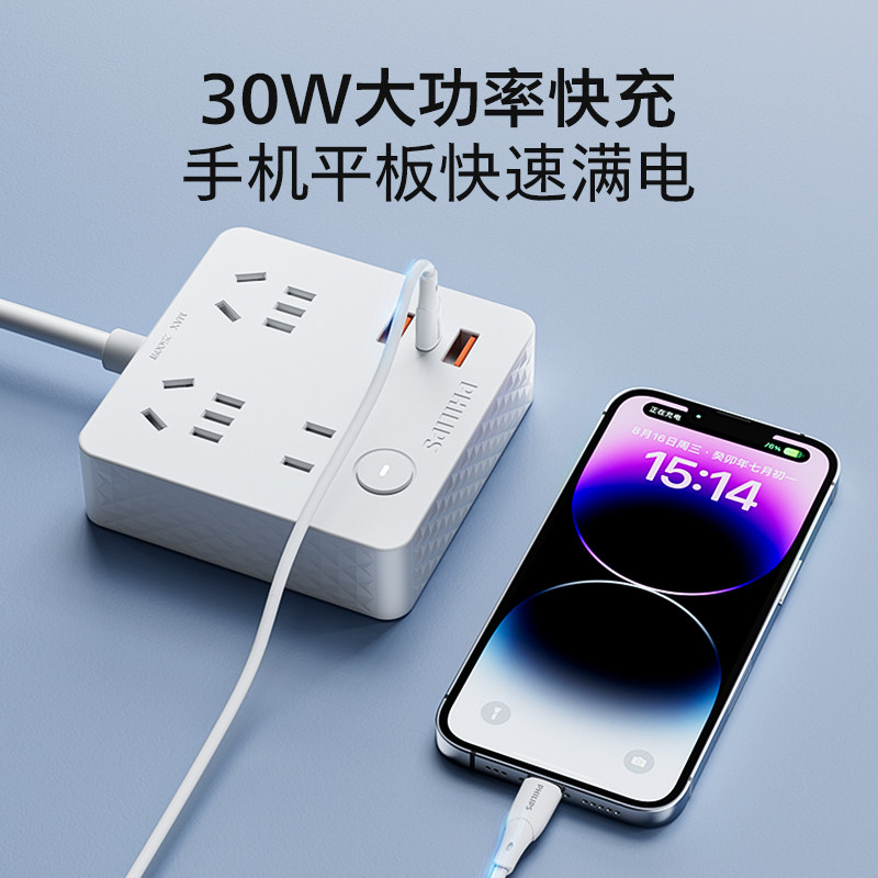 飞利浦美标插线板转换插头美国插排加拿大插座留学旅行快充美转中