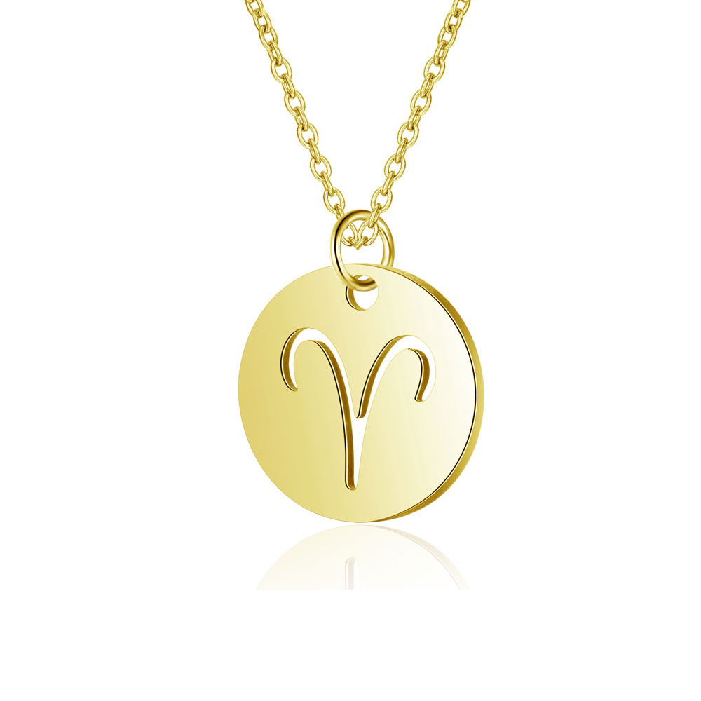 DIY钛钢饰品配件单孔圆形镂空ins不锈钢电镀K金星座项链手链挂件