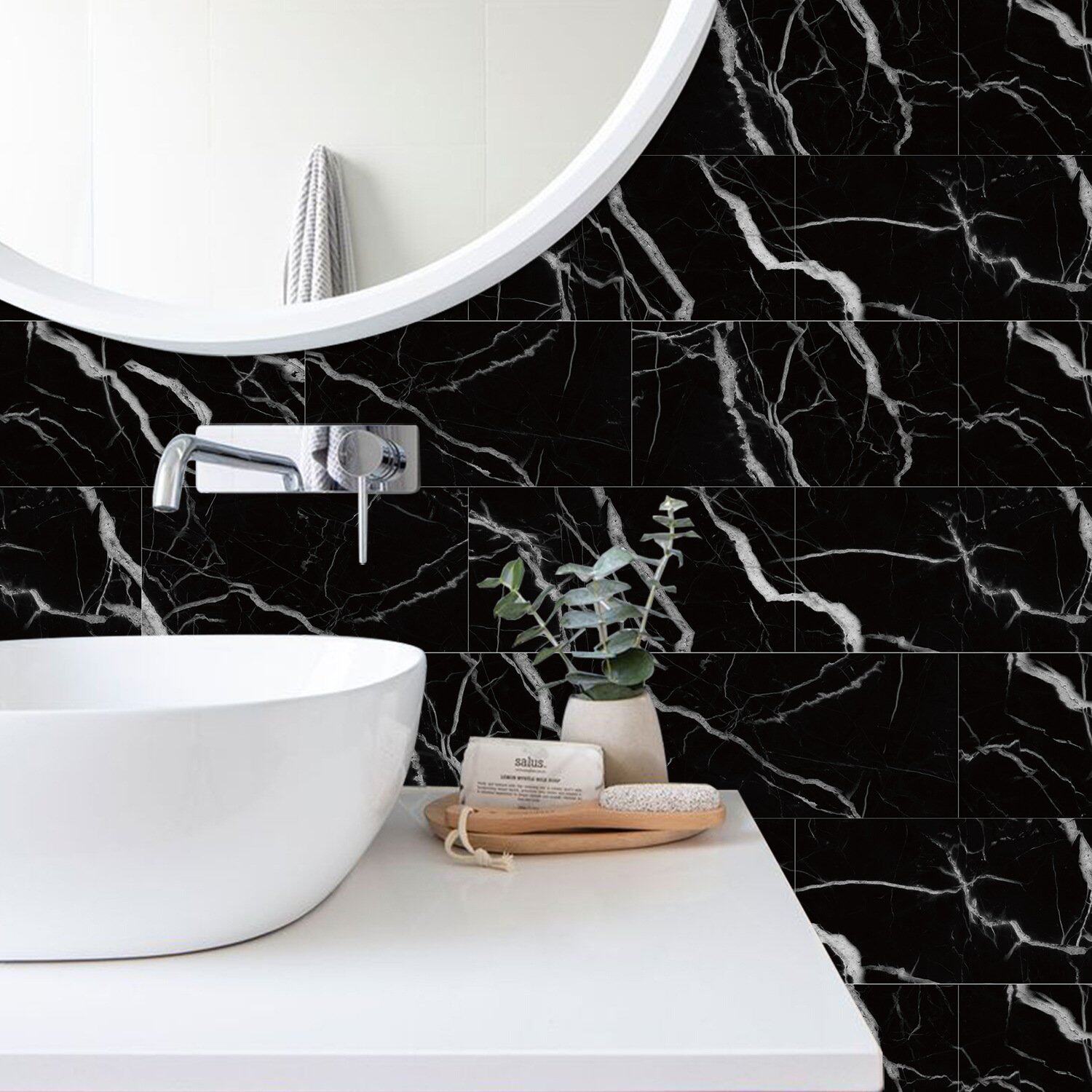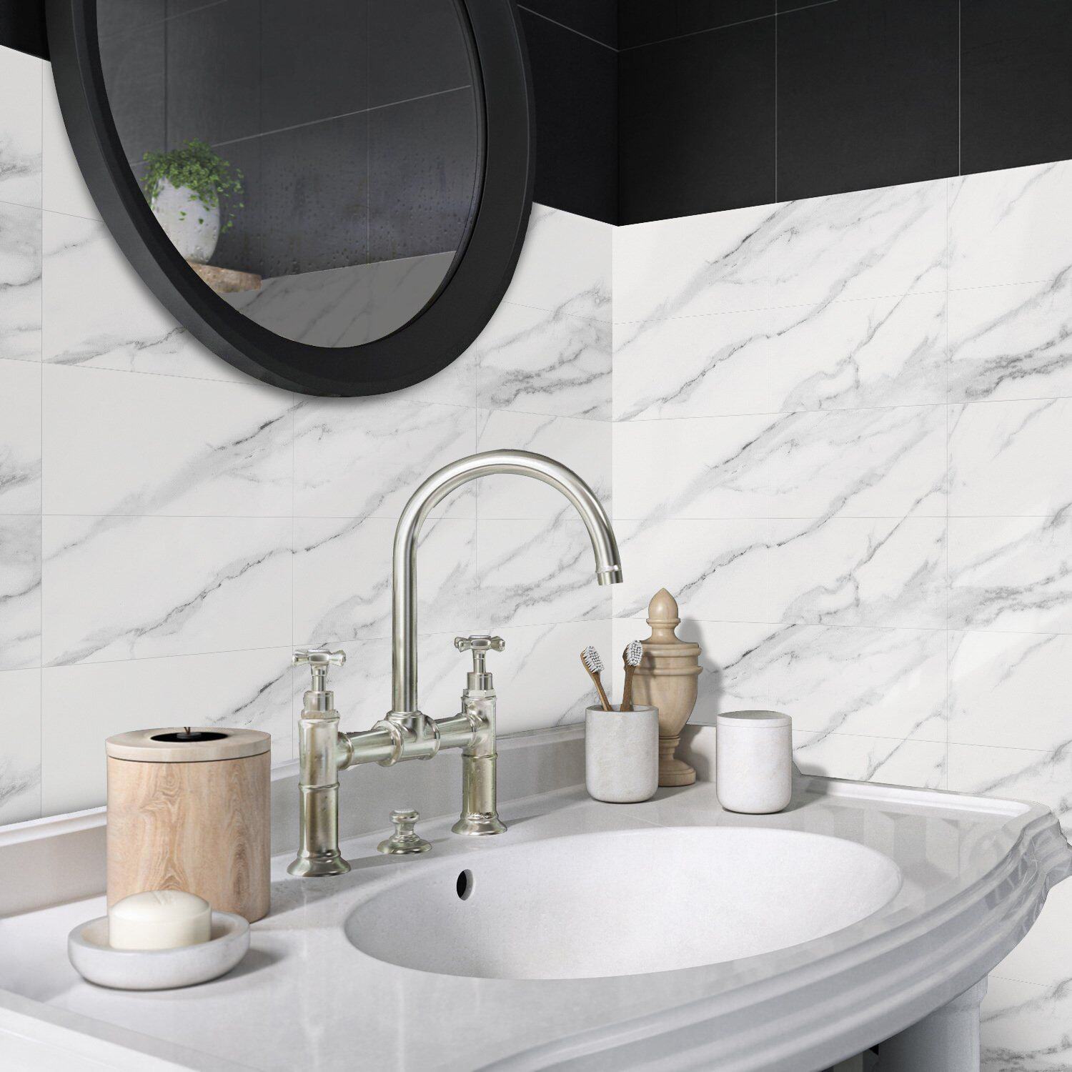 魅集仿瓷砖大理石纹厨房卫生间墙贴纸自粘背景墙防水防油墙纸跨境