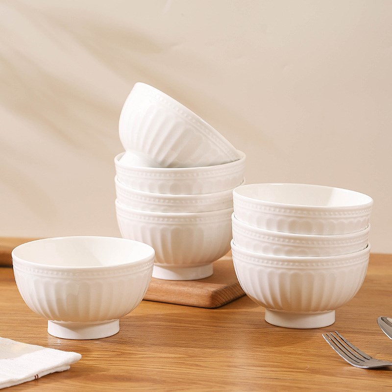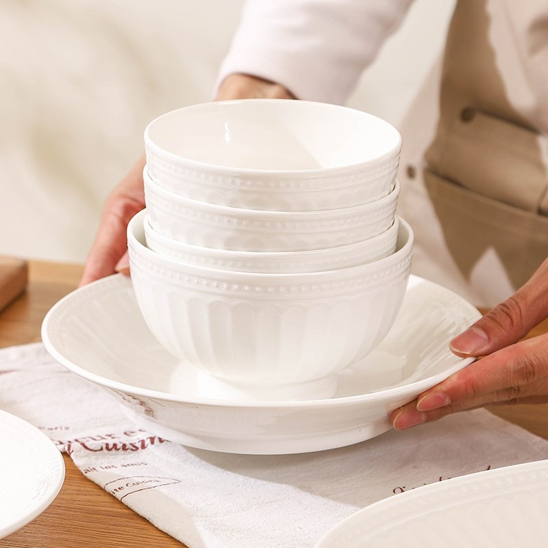 高级感纯白米饭碗特别好看的吃饭碗家用盘子碗釉下彩陶瓷餐具