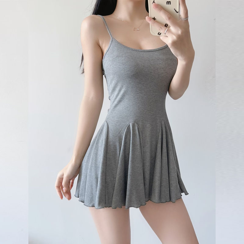 辣妹纯欲风低胸吊带连衣裙春夏新款打底裙拼接收腰黑色吊带裙短裙
