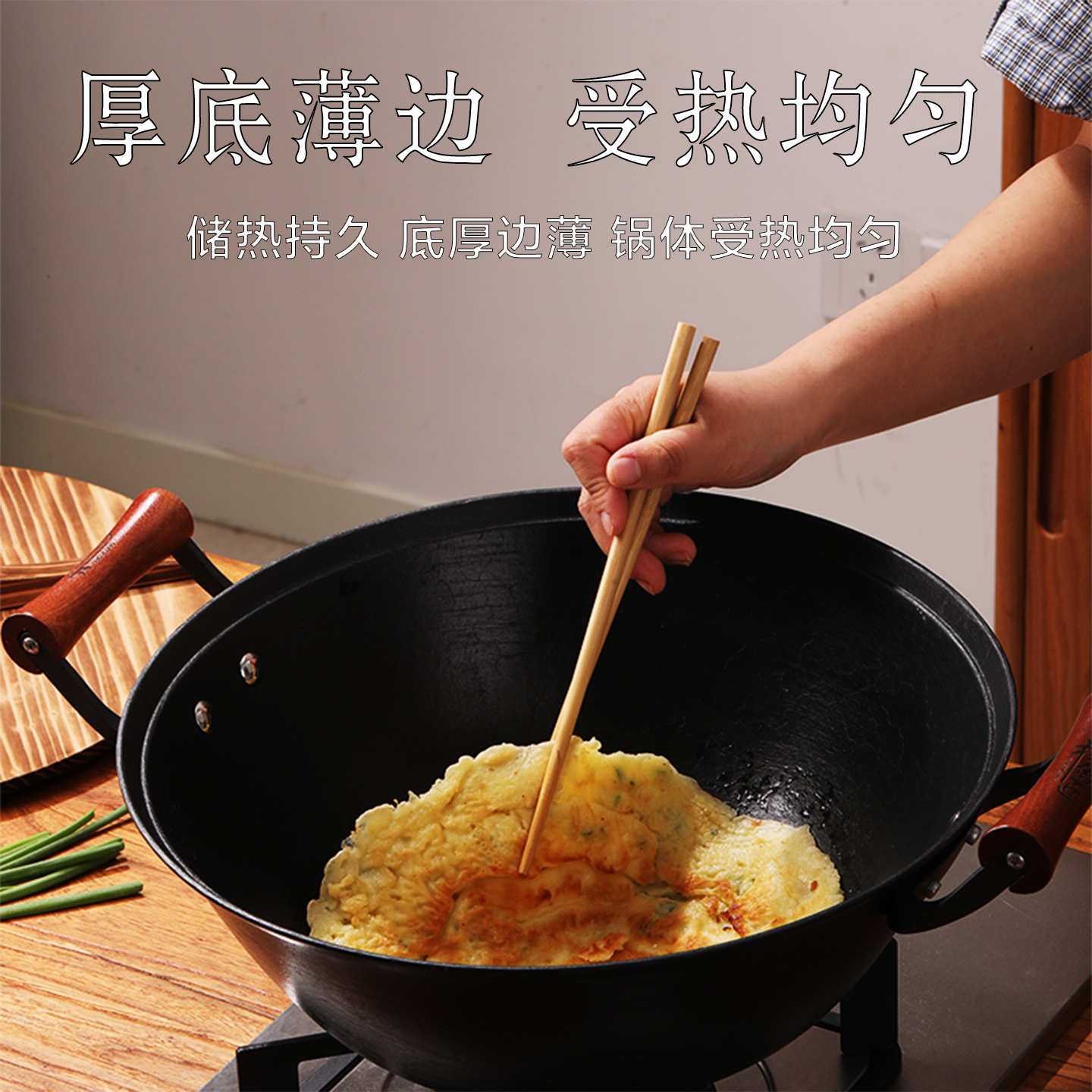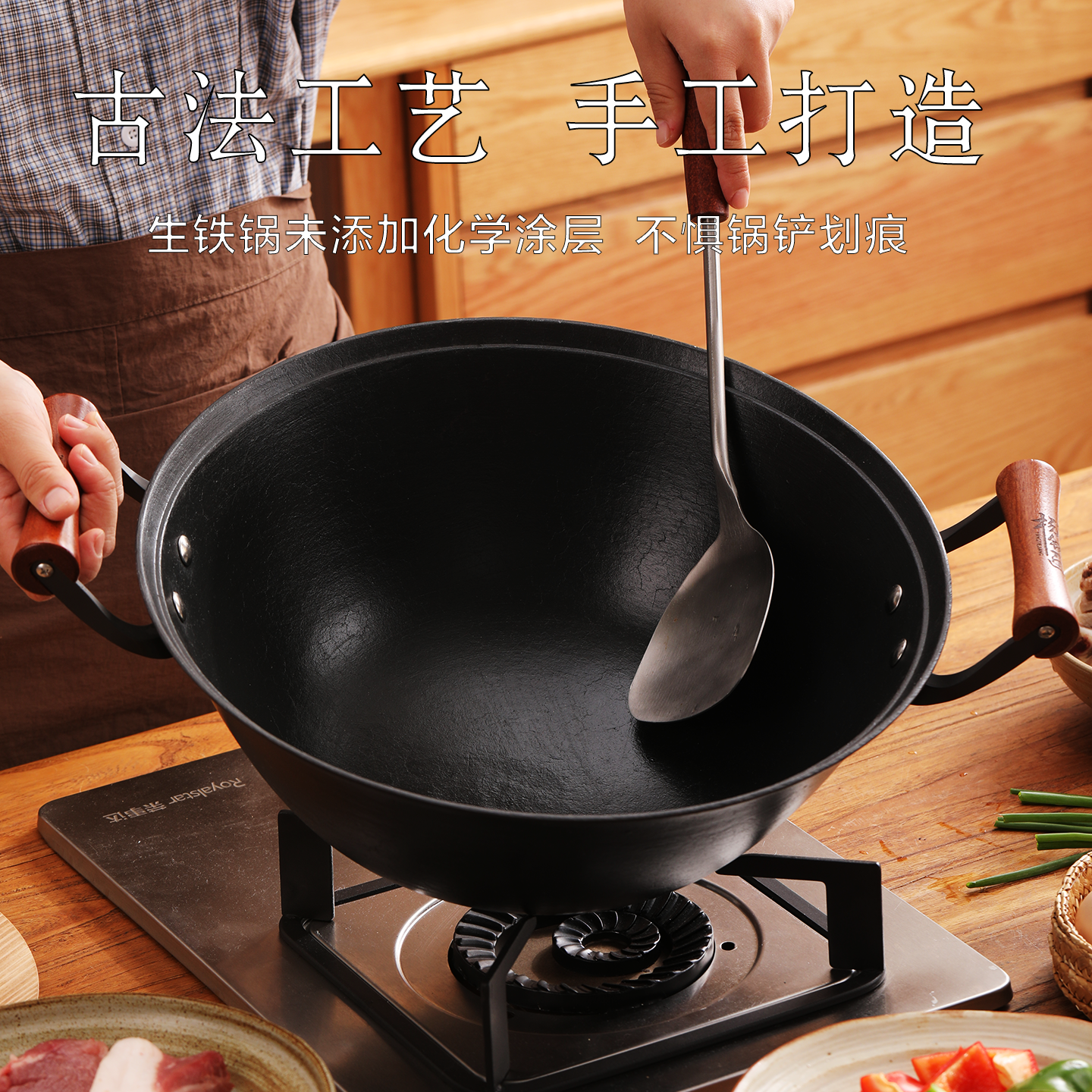 传统老式铸铁锅手工炒锅无涂层不易粘锅生铁圆底纯铁锅燃气灶炖锅