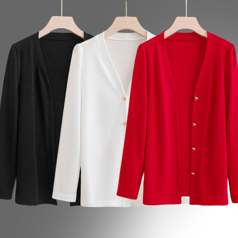针织开衫外套女秋冬 2025新款中年妈妈小个子长袖V领纽扣纯色毛衣