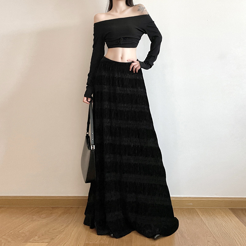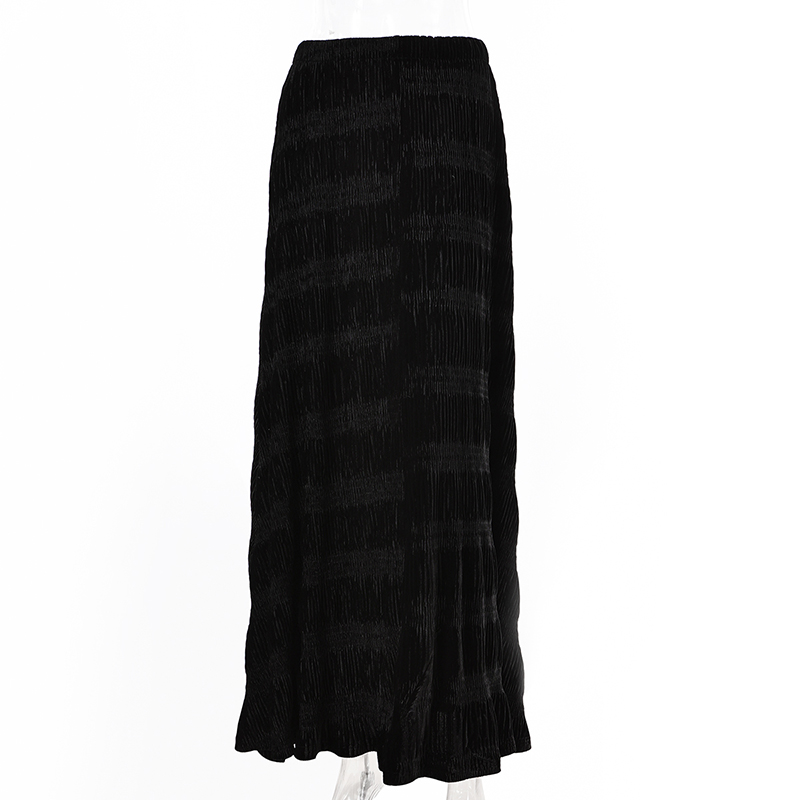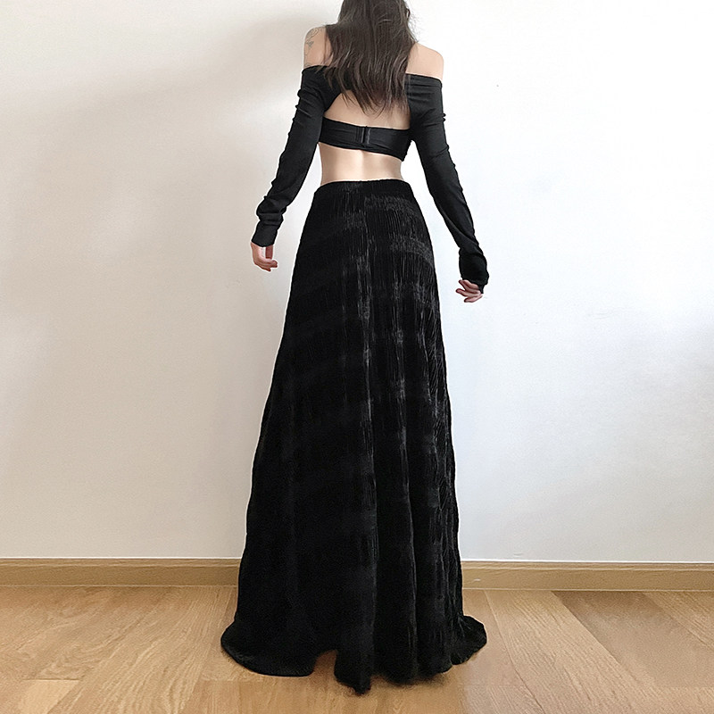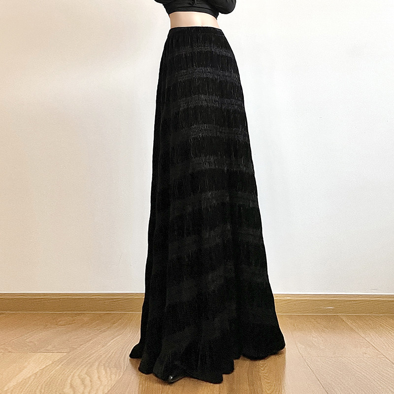 gagaopt2025新款黑色丝绒松紧高腰半身裙冬季百搭压褶显瘦A字长裙