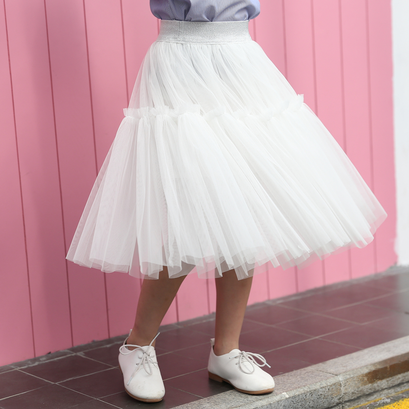 女童半身裙短裙纱裙女宝宝百褶裙中大童白色蓬蓬裙长裙儿童网纱裙