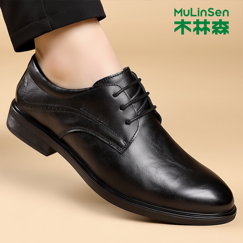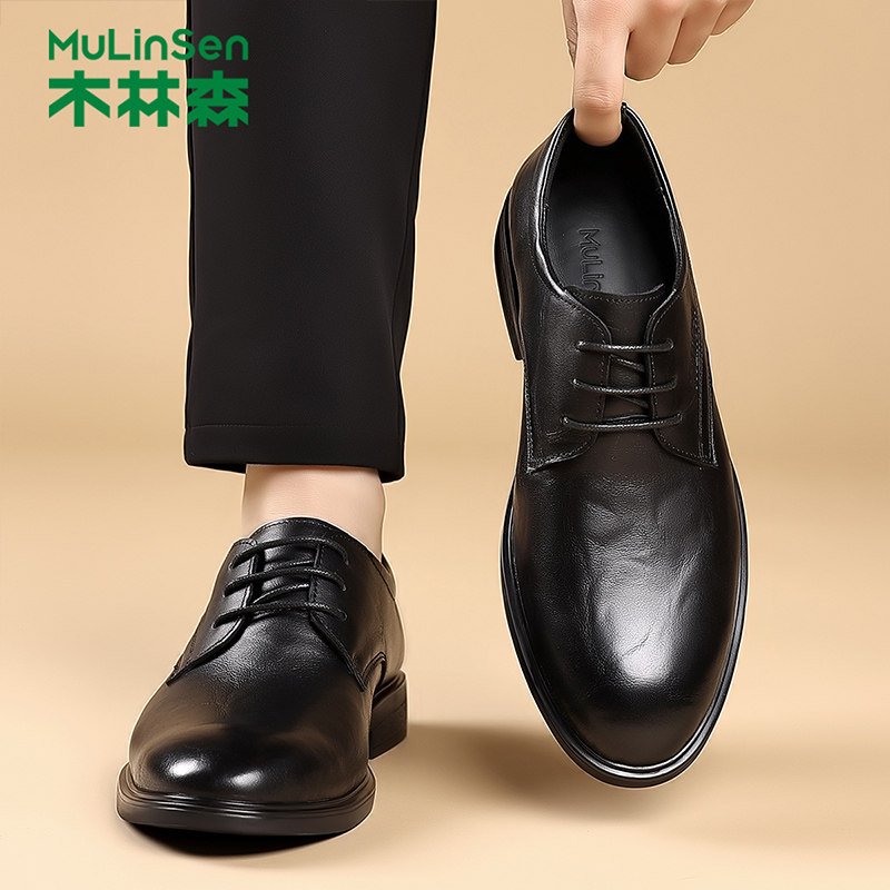 木林森正装皮鞋男款冬季真皮商务英伦德比鞋2025新款头层牛皮男鞋