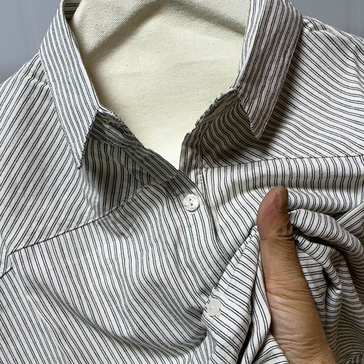 原单半开门襟纯棉竖条纹衬衫女长袖宽松套头显瘦早秋新款休闲衬衣