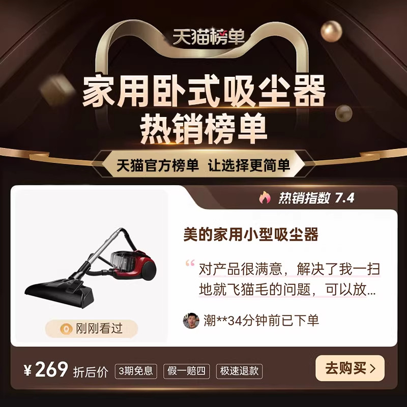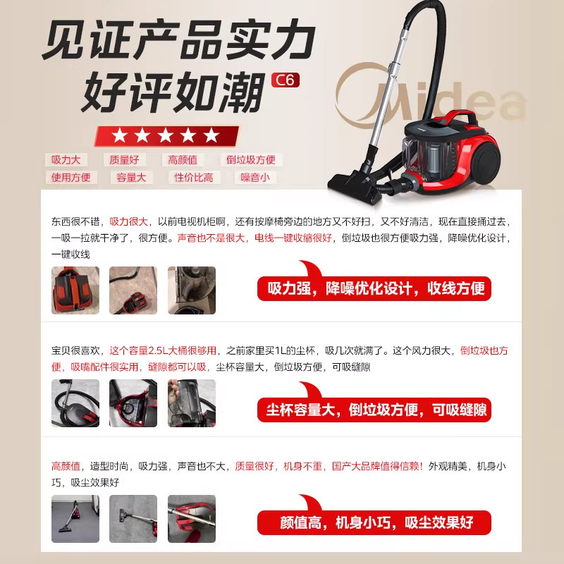 美的吸尘器C6家用大吸力小型卧式强力地毯新款有线吸尘机大功率