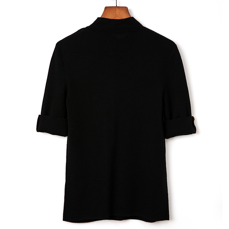 艾诺丝系列品牌折扣正品中袖短款毛衫夏高端黑色中领针织衫女