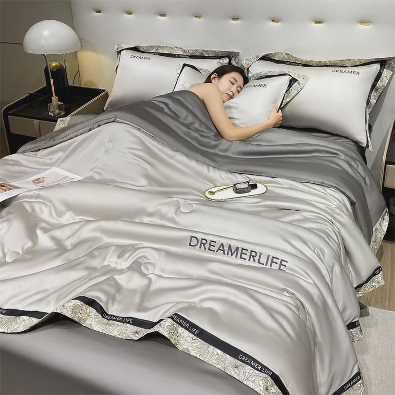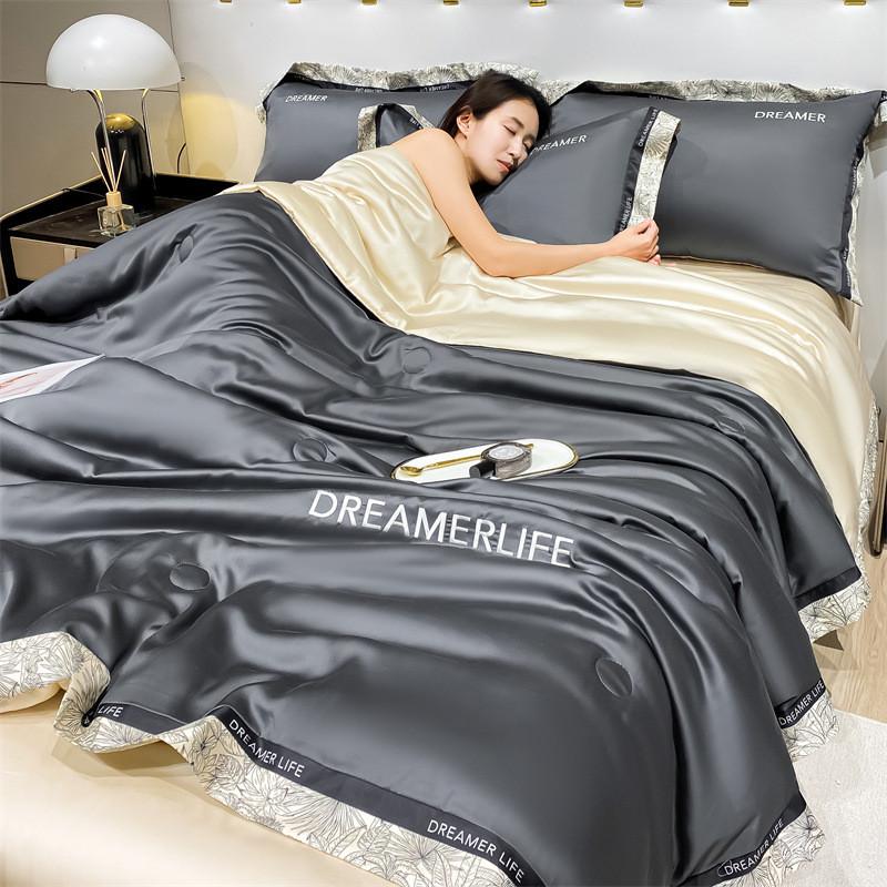 80空调被天丝双面刺绣夏凉被四件套冰丝支可机洗夏被丝滑薄被子