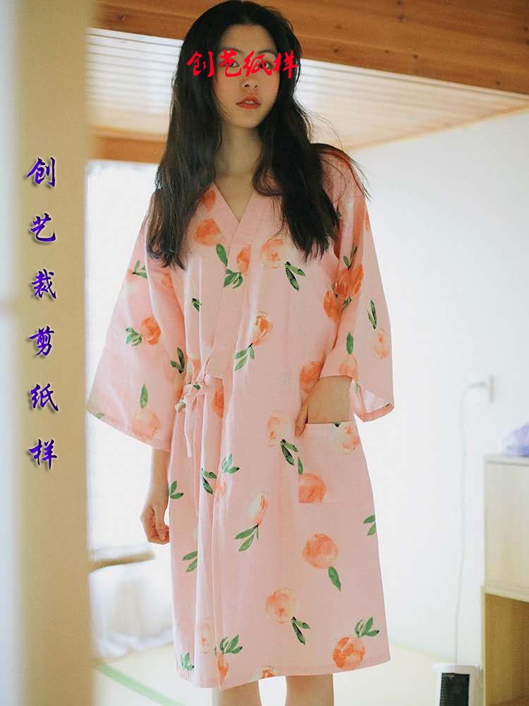 裁剪图 B44日系睡裙女纯棉睡袍日式和风春秋大码浴袍和服睡衣纸样
