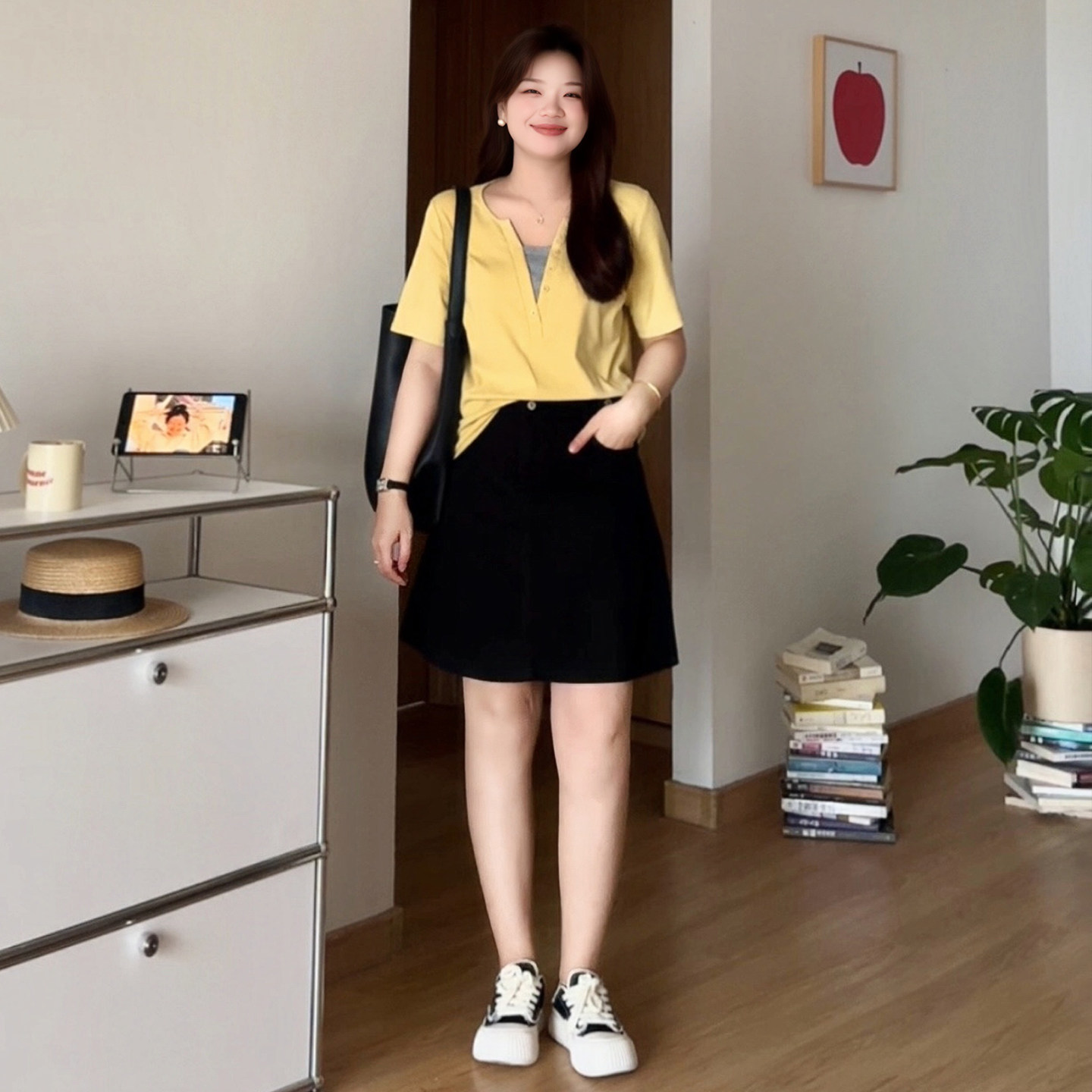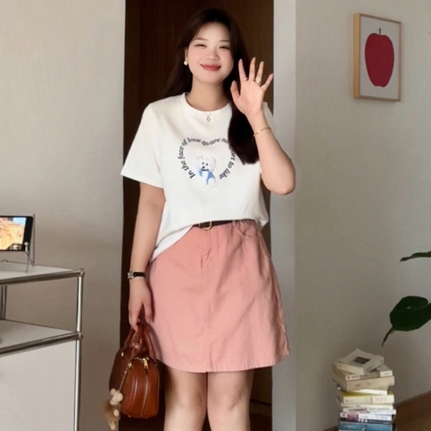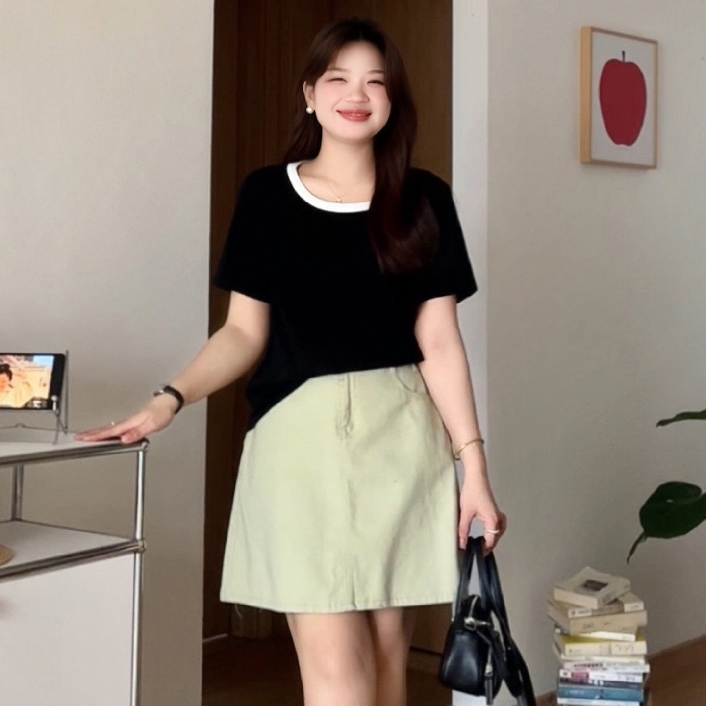 大码梨形mm时尚高腰A字半身短裙