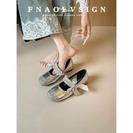 羊皮版~法式蝴蝶结浅口单鞋女2025新款仙女风内增高配裙子平底鞋