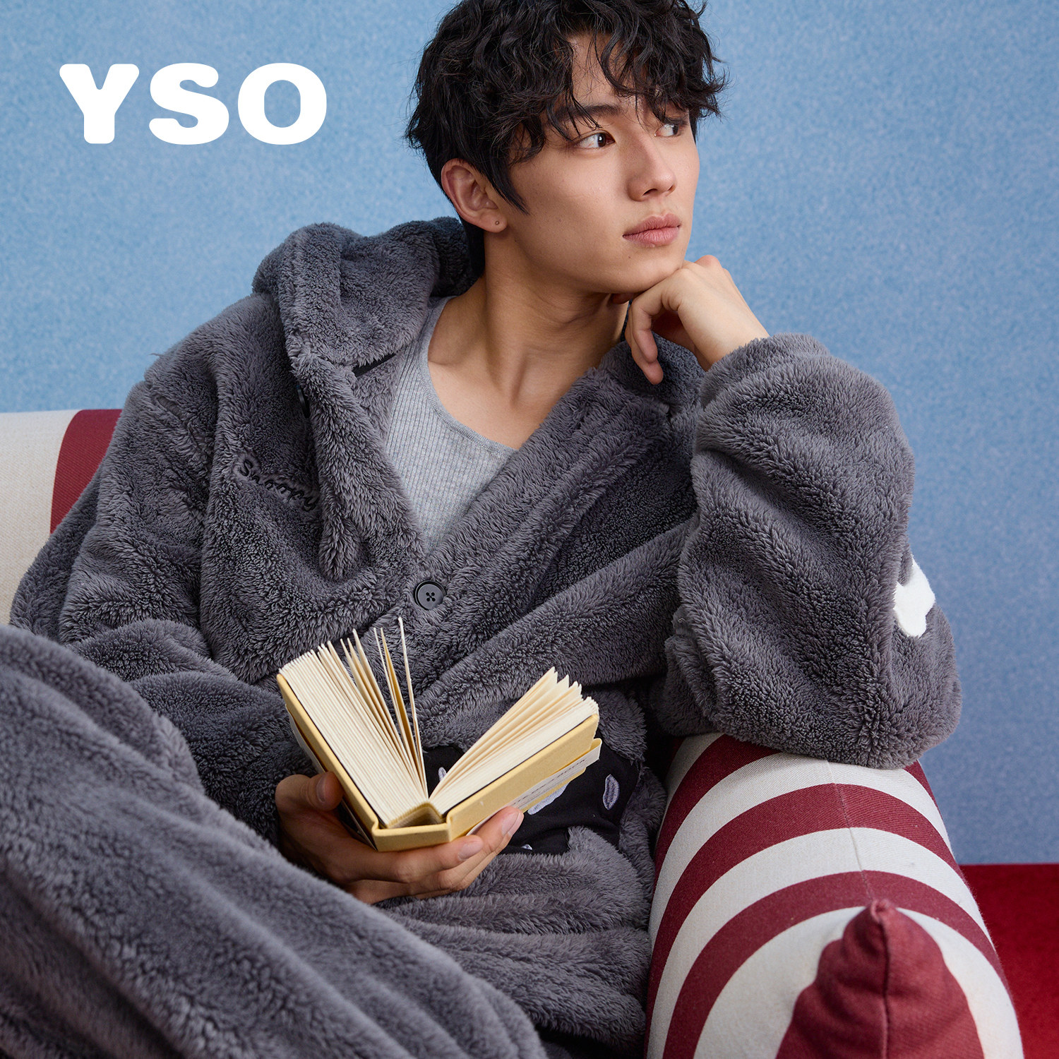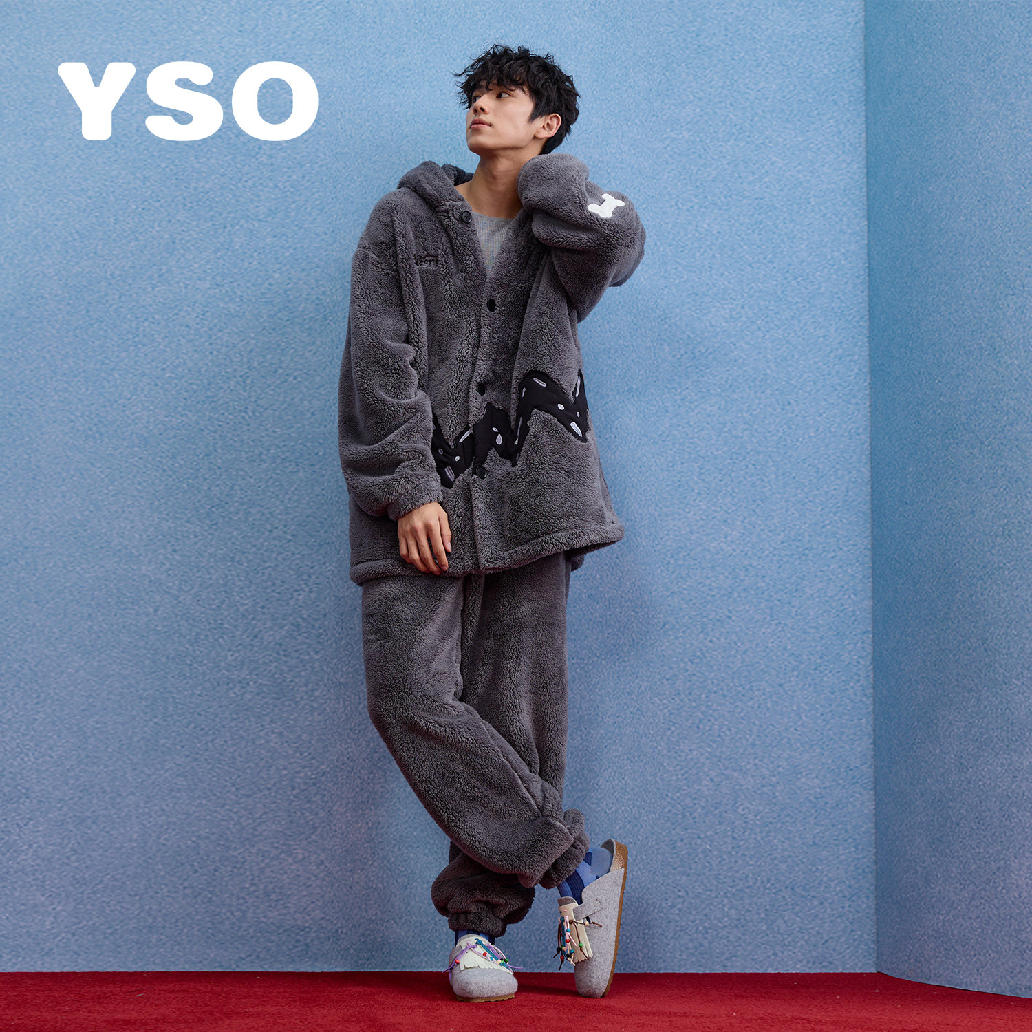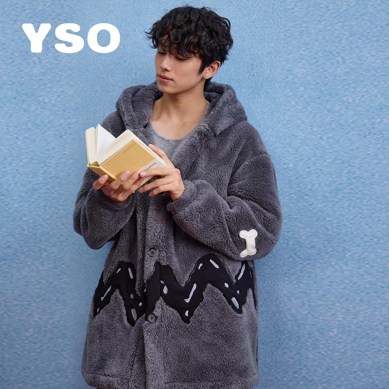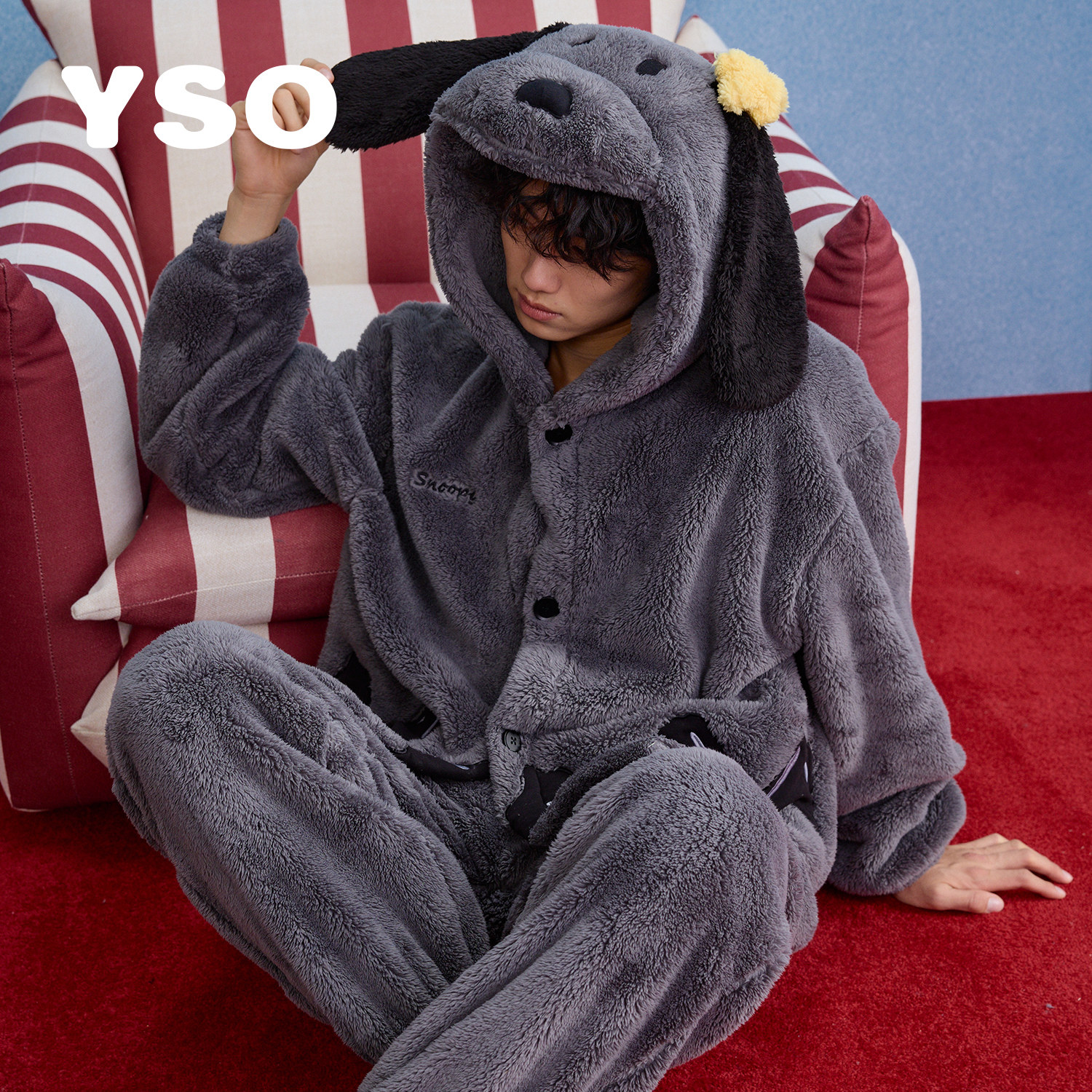 yso【史努比系列】睡衣男款秋冬加厚连帽珊瑚绒可外穿男家居服D