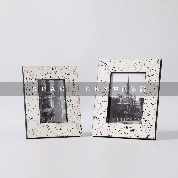 现代轻奢样板间卧室床头柜黑白马毛相框相架晶石香薰饰品组合摆件
