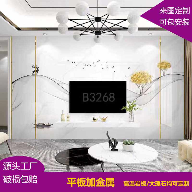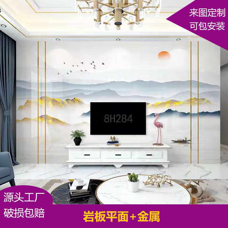 新中式电视背景墙岩板瓷砖微晶石现代简约山水画岩板影视墙大理石