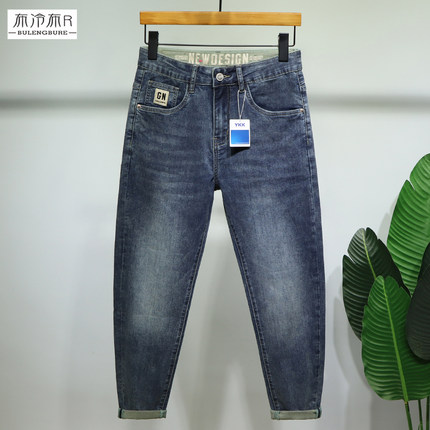 布冷布热 夏季薄款九分牛仔裤男蓝灰色高端时尚弹力小脚修身9分裤