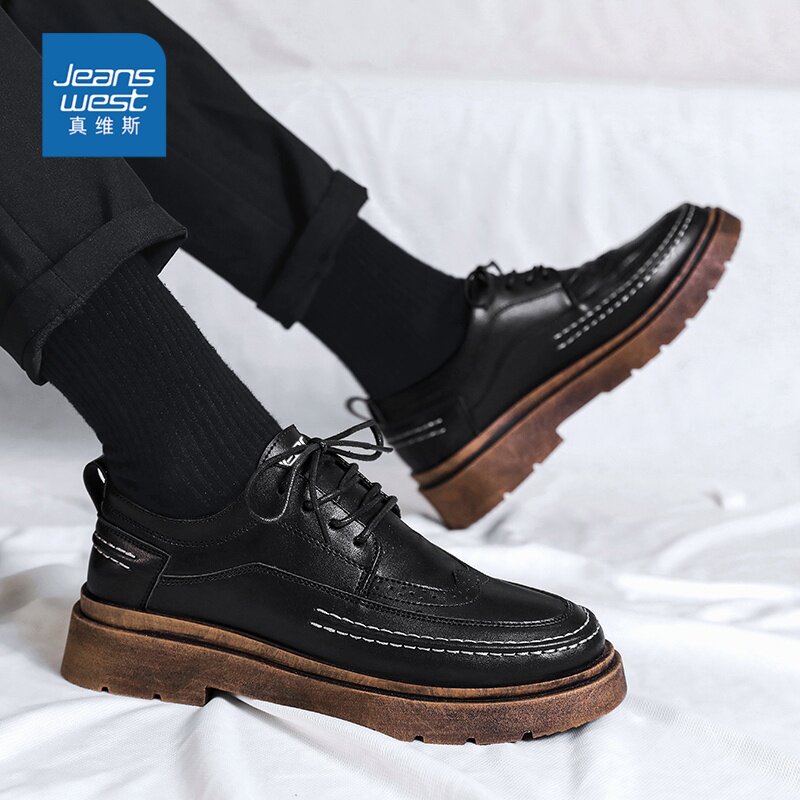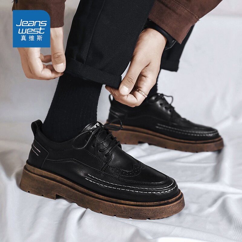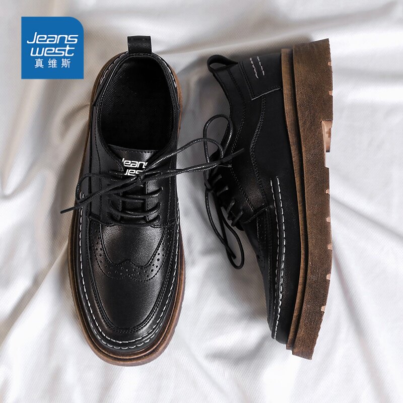 真维斯男鞋2026春季新款英伦风布洛克皮鞋男士休闲鞋厚底增高板鞋