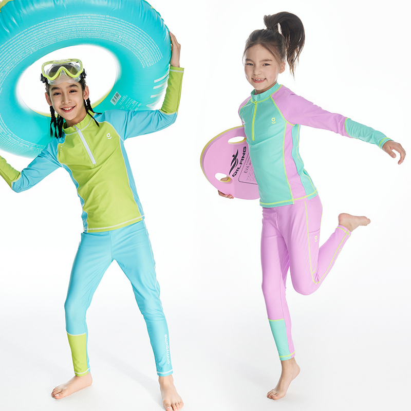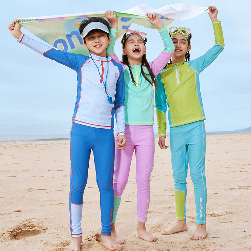 onmygame女童泳衣男童泳衣裤夏季儿童泳衣防晒分体套装抗氯速干