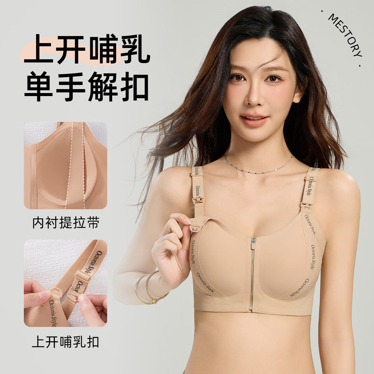猫人上开扣哺乳内衣女前拉链孕妇A类产后喂奶防下垂大胸显小文胸