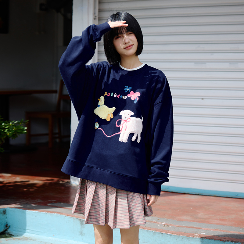 PSO Brand男装女装毛巾底针织可爱甜美动物们圆领卫衣休闲宽松