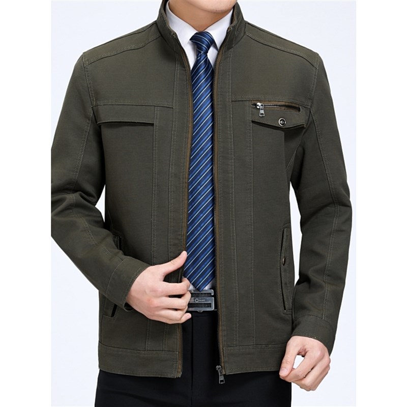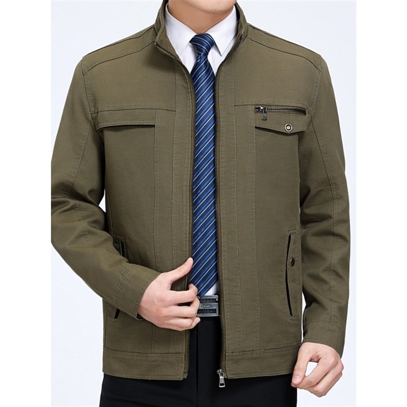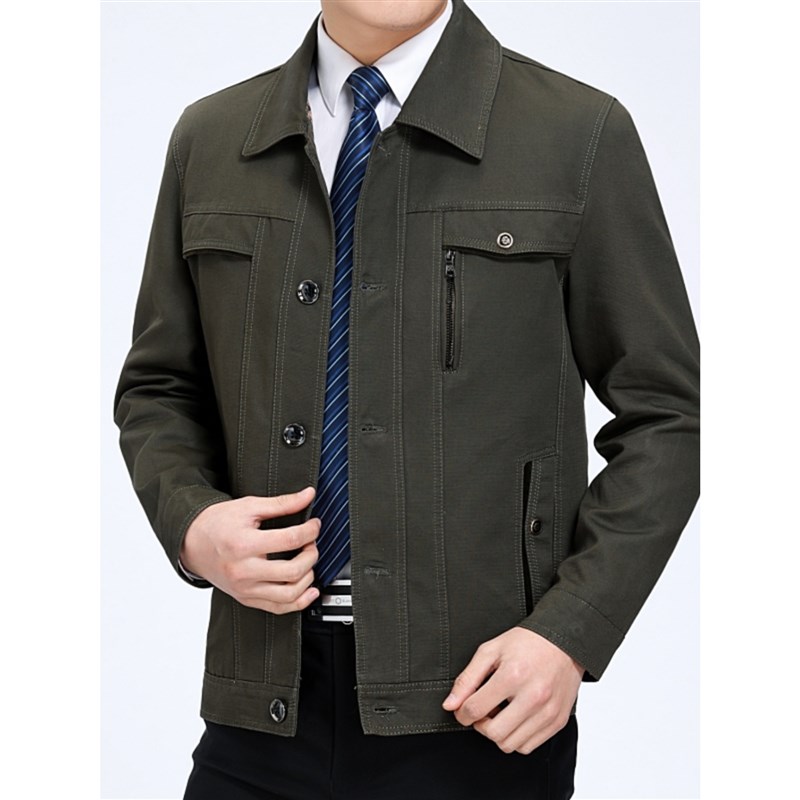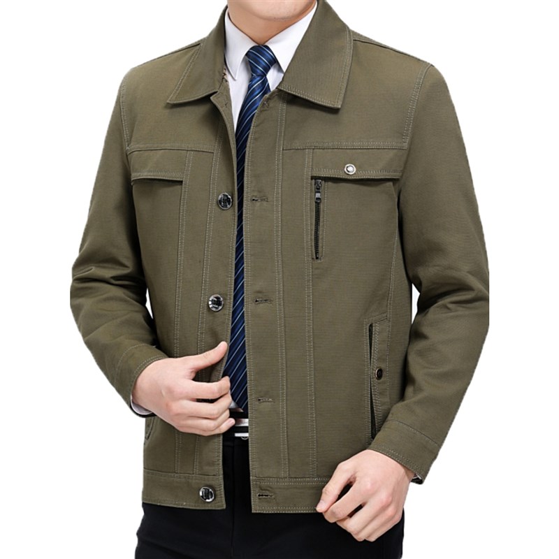 高端中老年夹克男2025全棉外套春秋纽扣款爸爸爷爷中年潮流休闲装
