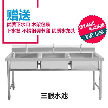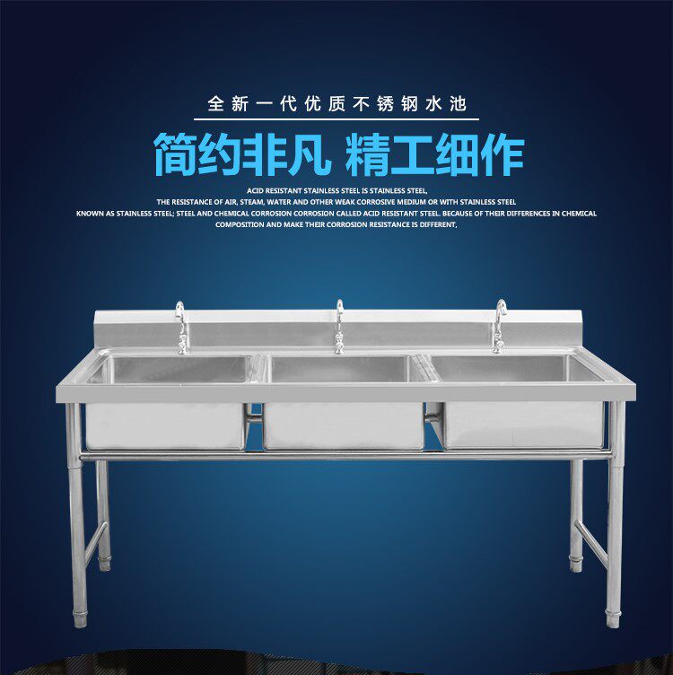 商用不锈钢水槽三槽洗刷池三星水池三槽洗菜盆洗碗池食堂厨房饭店