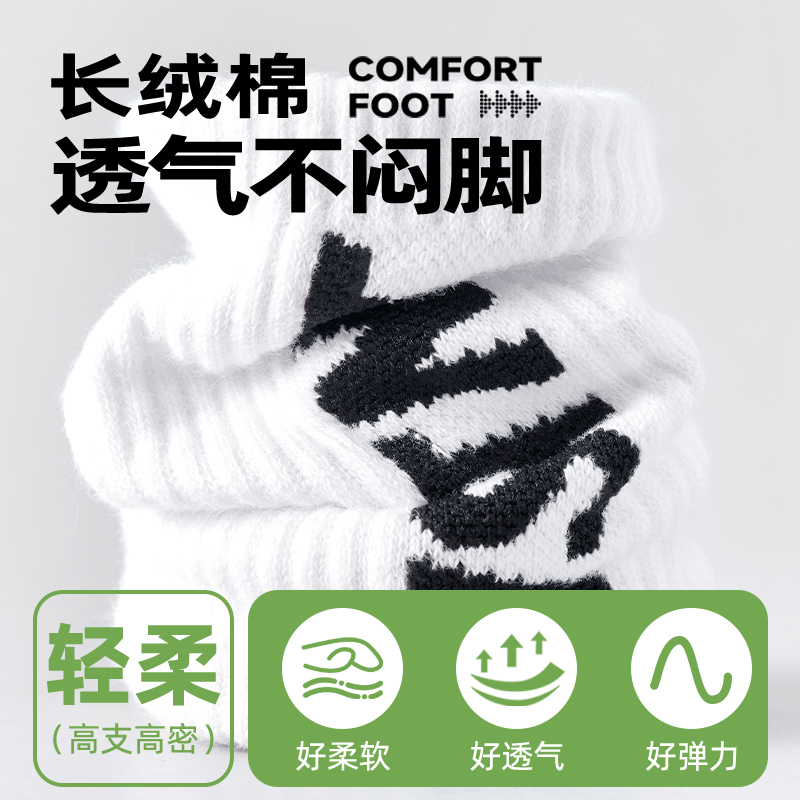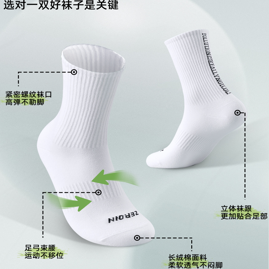 佐印男士袜子青少年纯棉秋冬款季运动袜中筒袜吸汗防臭篮球袜长袜
