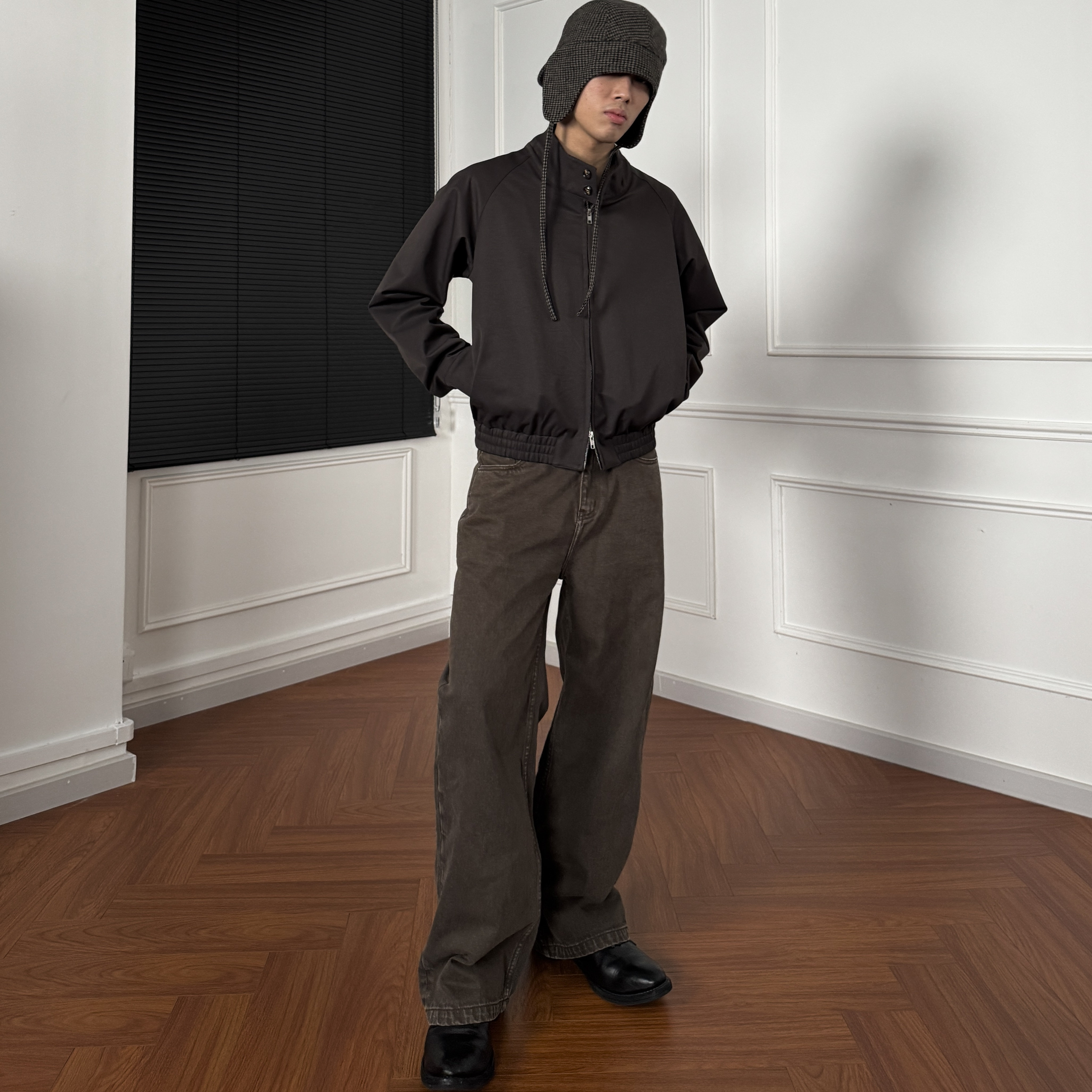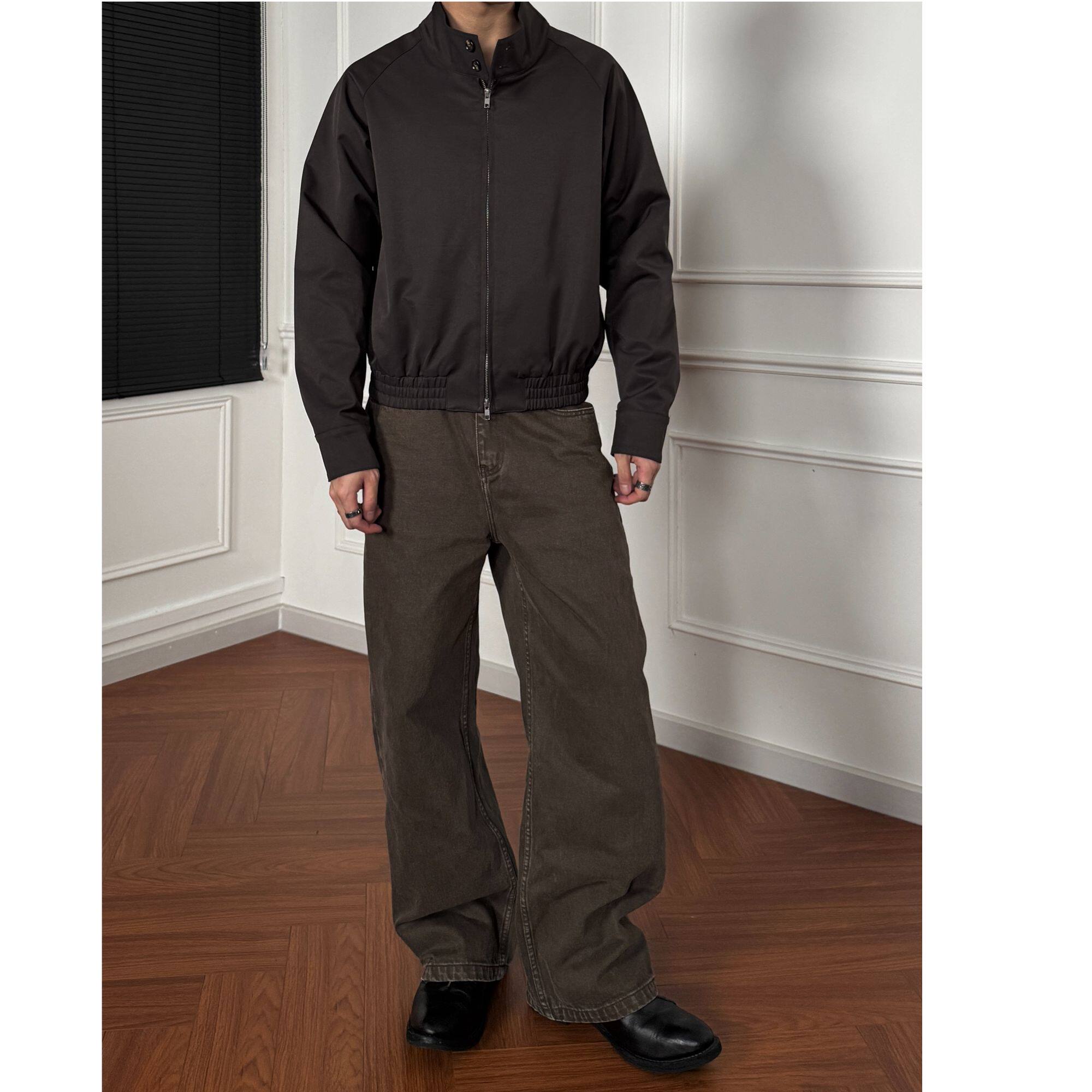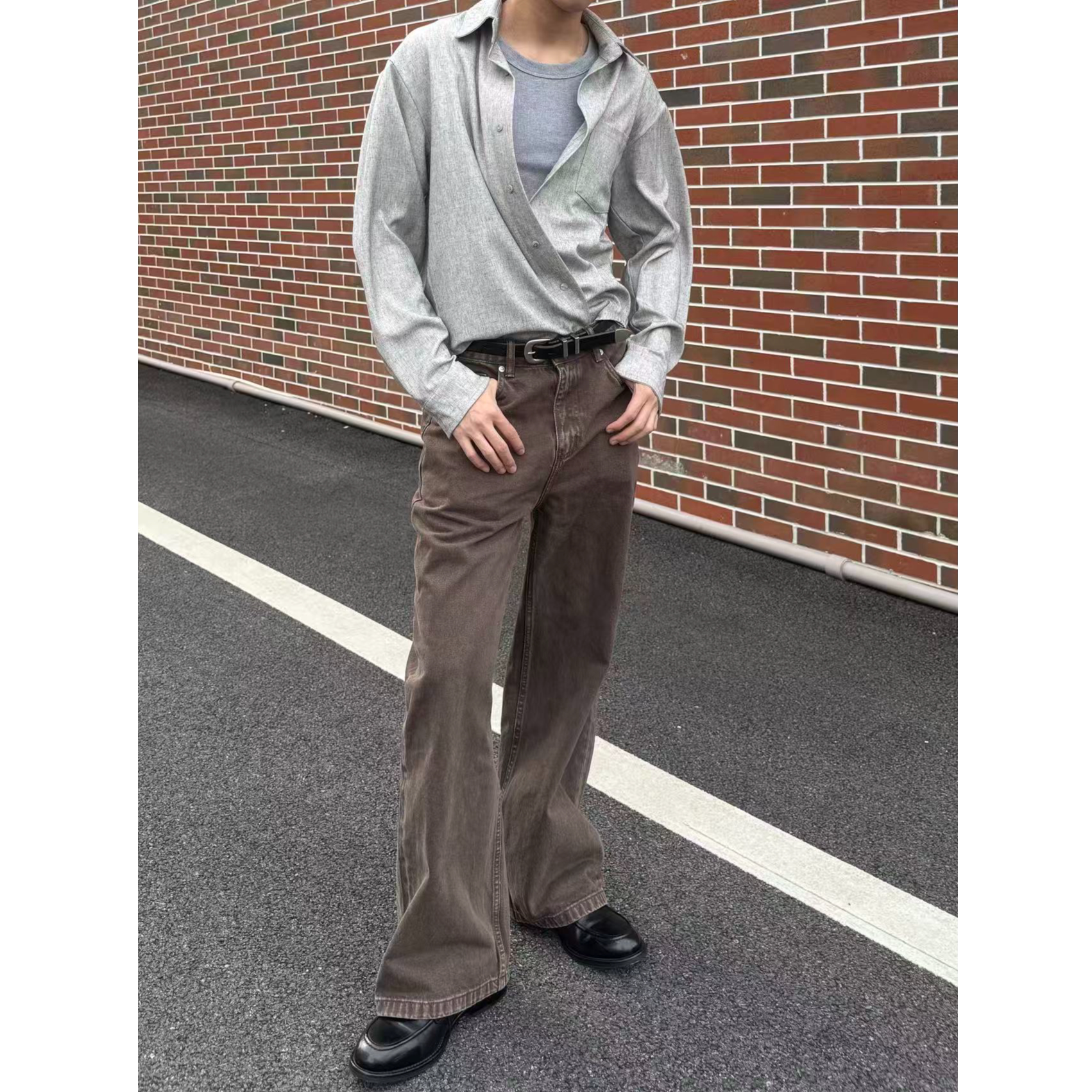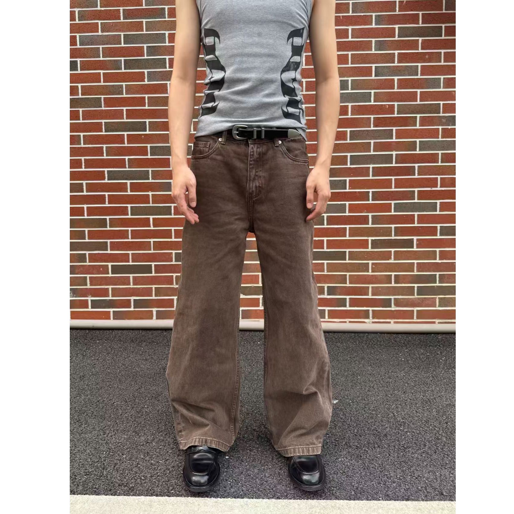 [棕色水洗牛]14.5盎司阿苏特染直筒阔腿A字牛仔裤PoorLandCNZ04