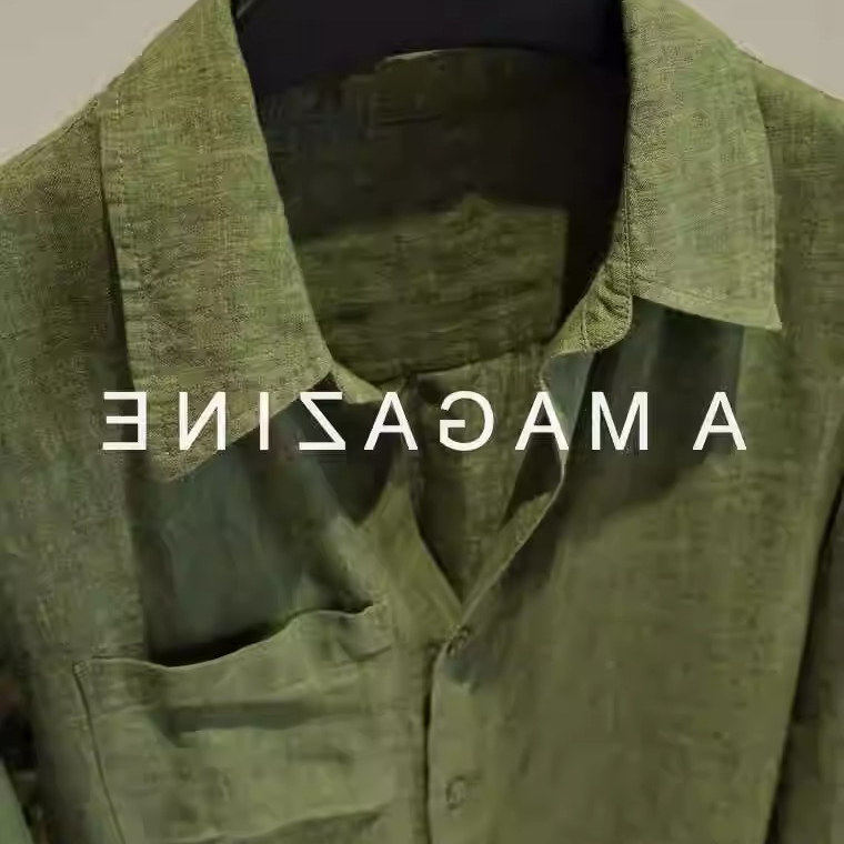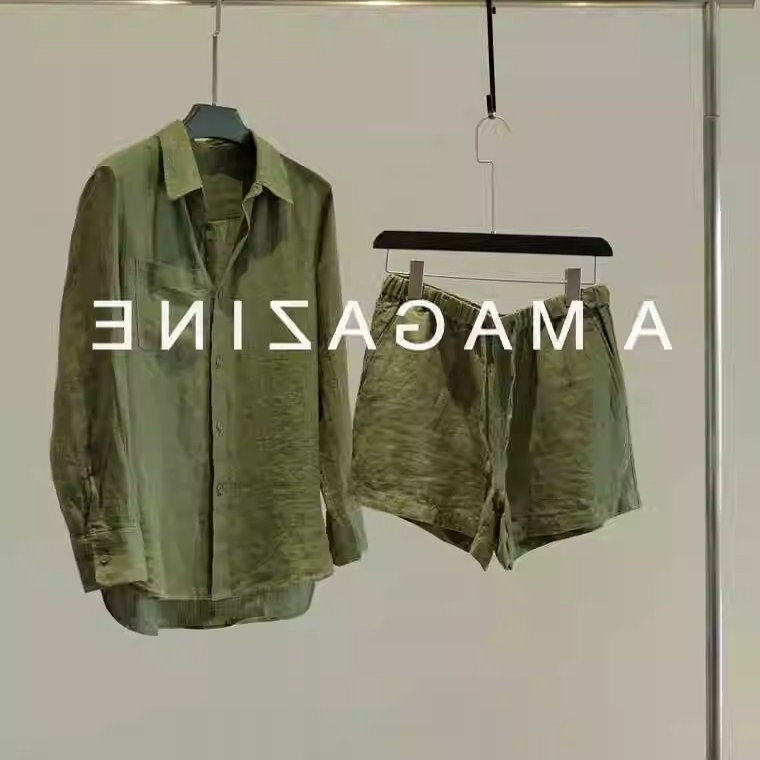 牛X货 巨炸裂!独特苔藓绿意大利色织软亚麻时髦慵懒休闲衬衫套装