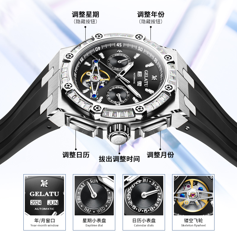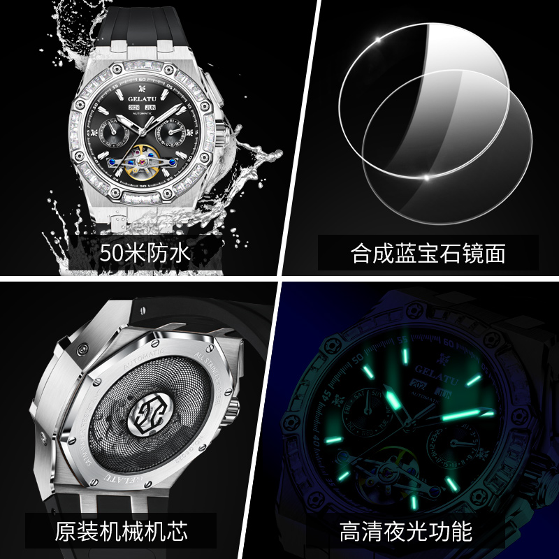 2025新款格拉图品牌正品手表男士全自动机械表多功能防水夜光男表