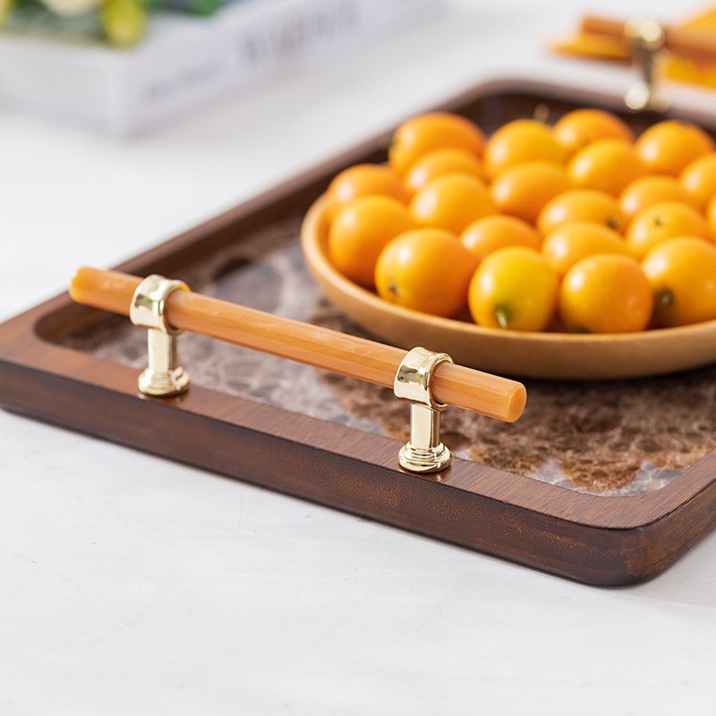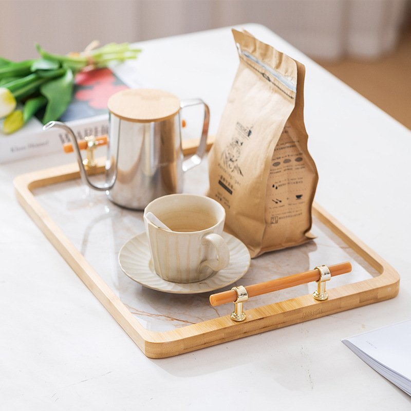 新款竹制石塑底茶托盘 家用客厅厨房轻奢风茶具托盘提手茶盤