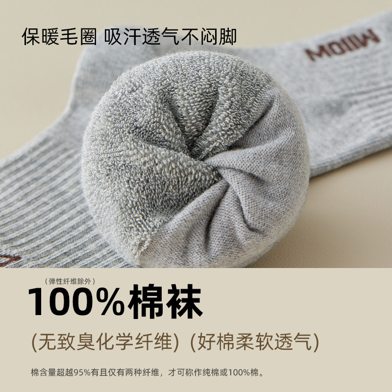 猫人袜子男款纯棉冬加厚御寒抗菌防臭运动100%毛圈保暖冬款男士