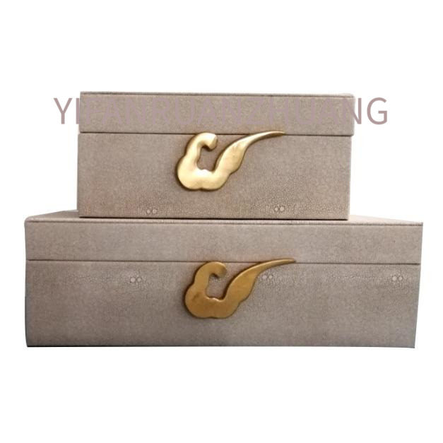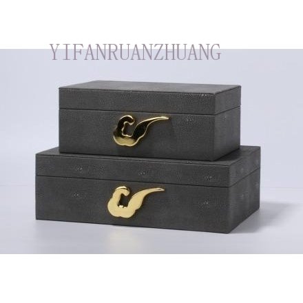 极速新中式首f饰盒样板房衣帽间家居软装饰品盒子摆件皮革珠宝收