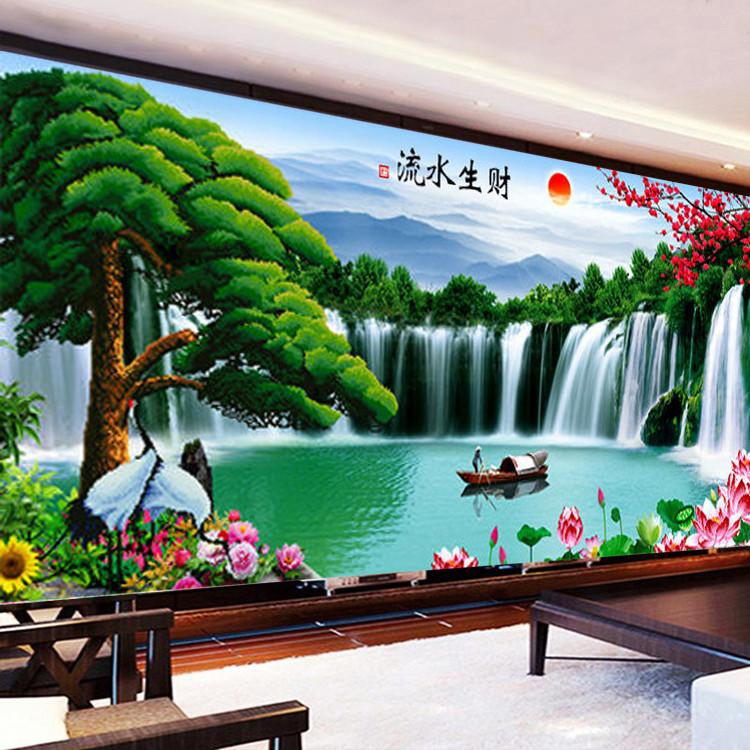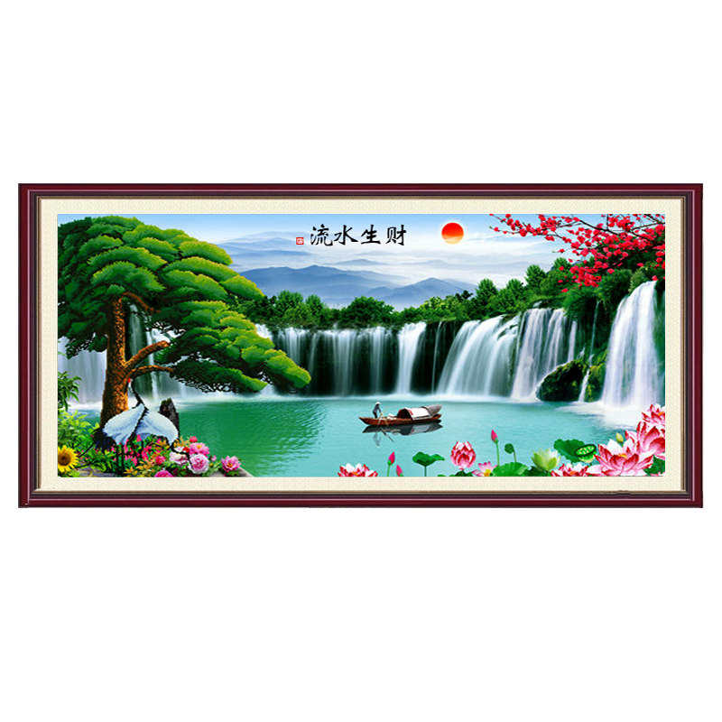 2023新款钻石画满钻流水生财山水画5D点贴钻十字绣客厅迎客松风景