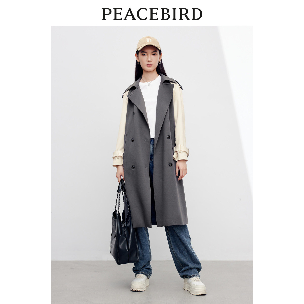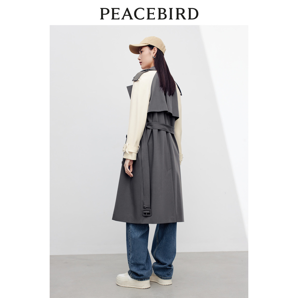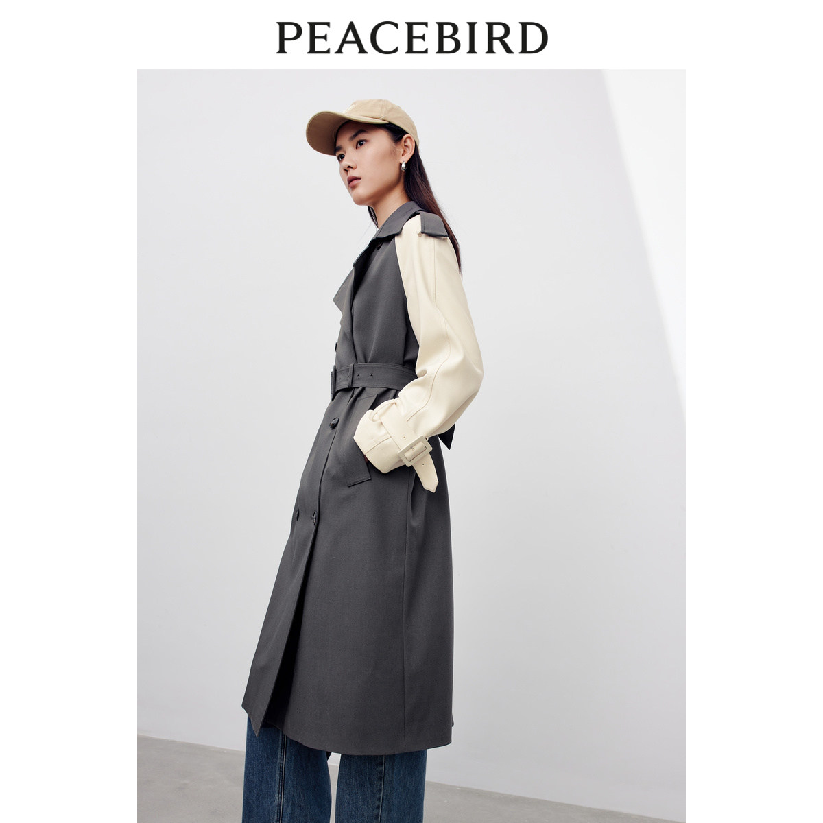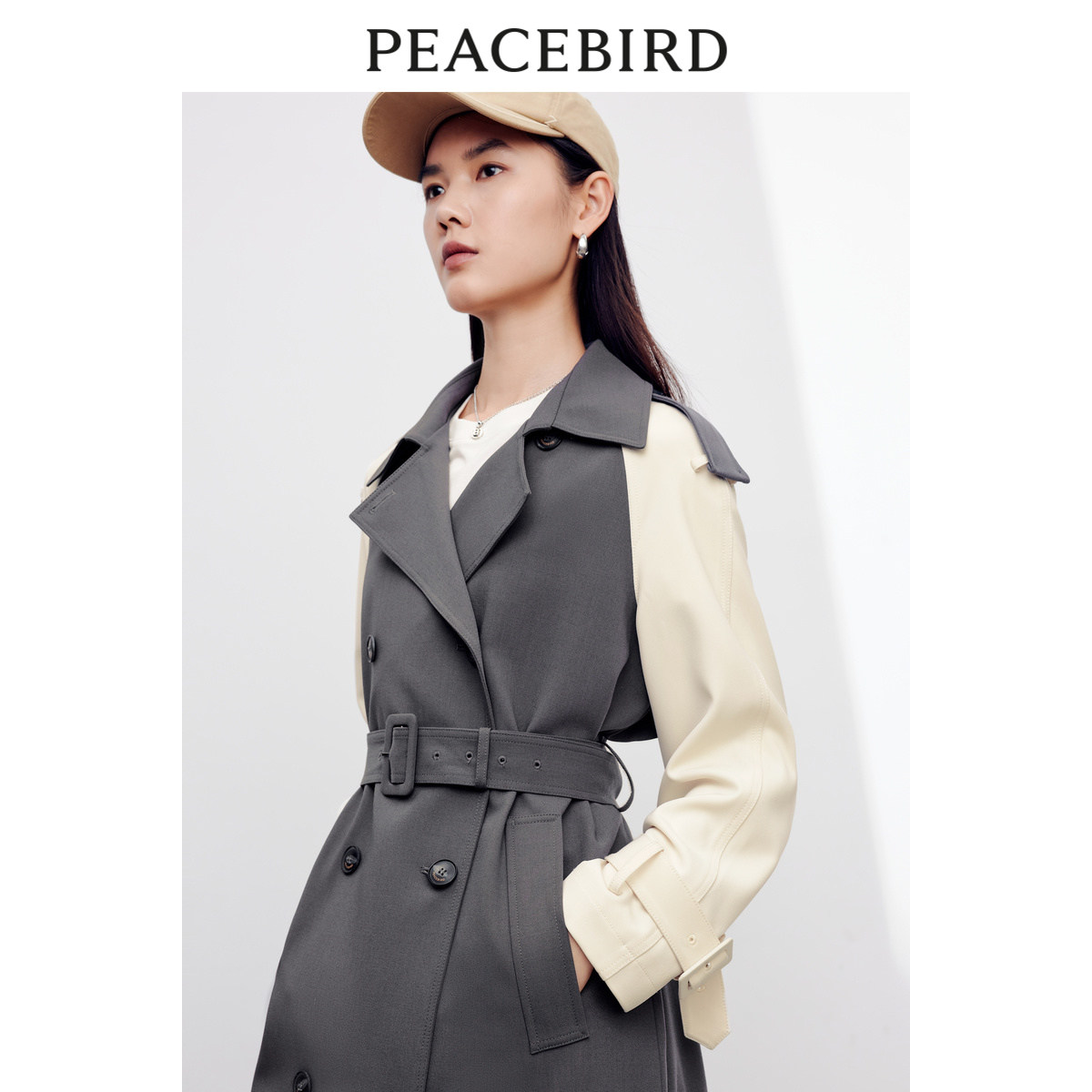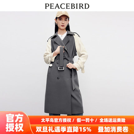 【商场同款】太平鸟女装2025秋季新款拼色插肩袖风衣A1BED3401