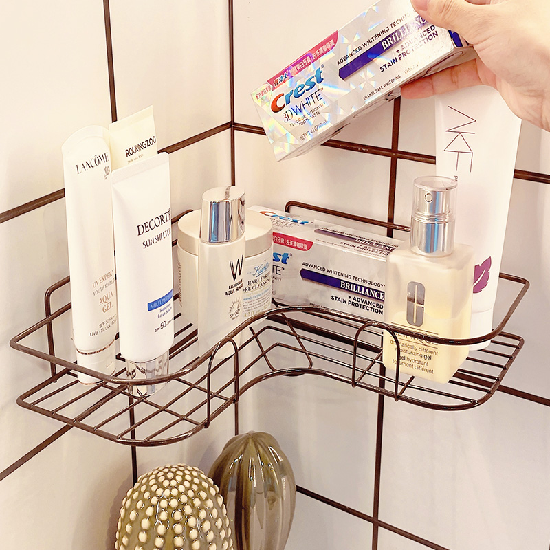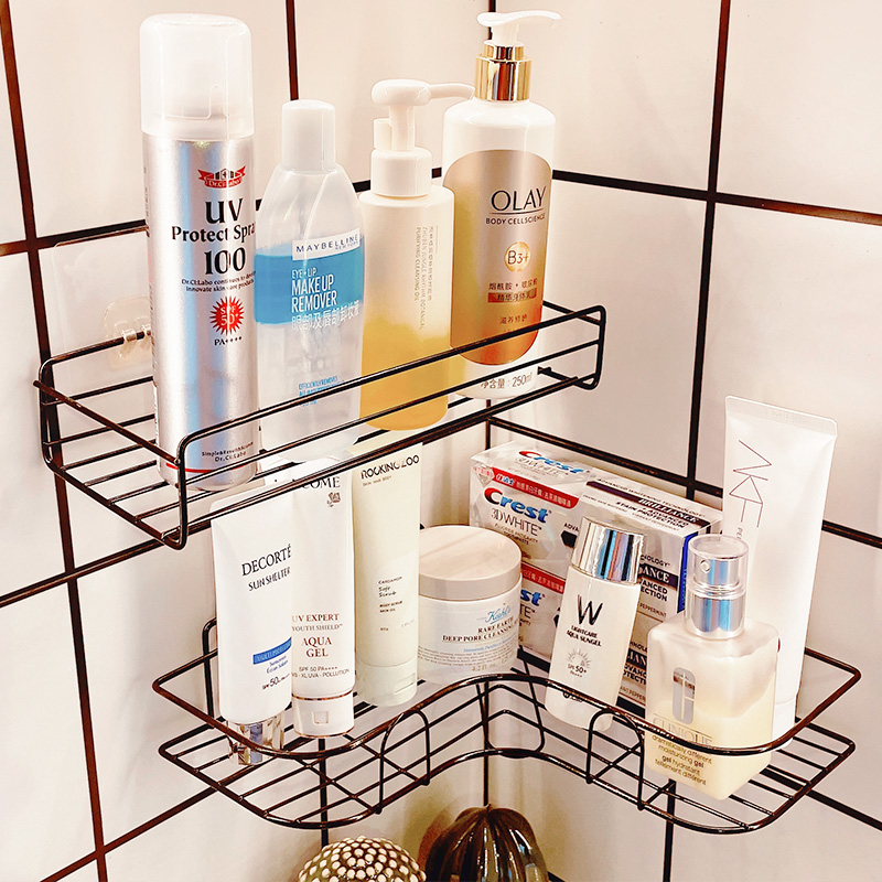 速发免打孔三角置物架卫生间浴室厨房铁艺收纳架储物篮厕所墙上壁