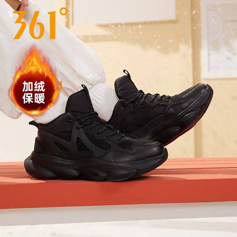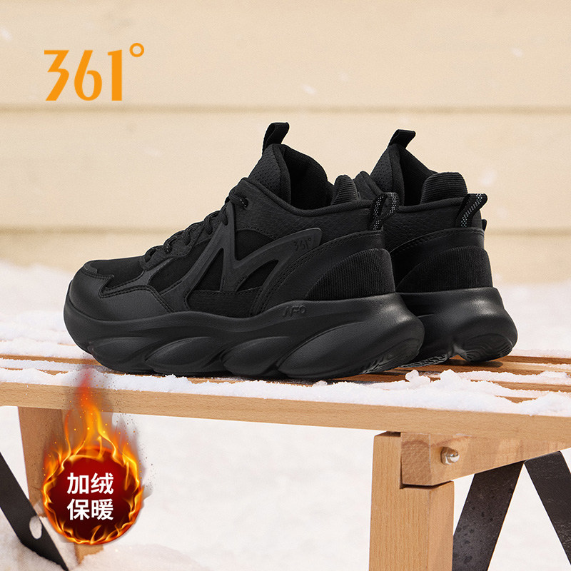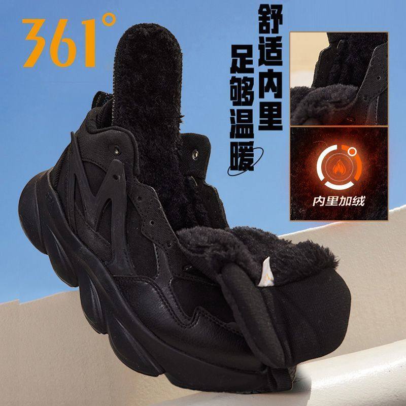 361灵狐加绒女鞋运动鞋冬季新款保暖棉鞋跑鞋皮面黑色跑步鞋子女