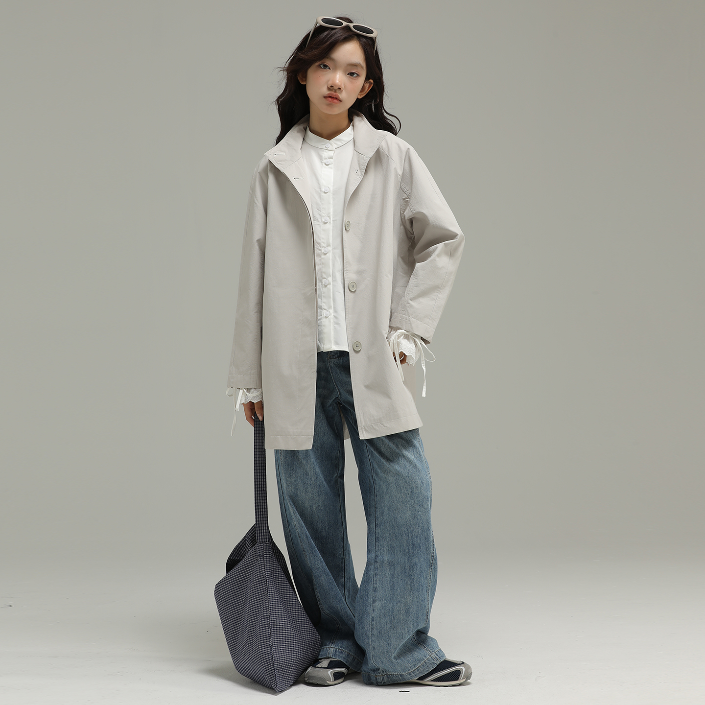 小女森女童夏季牛仔裤复古水洗蓝阔腿裤儿童宽松显瘦垂感直筒裤子