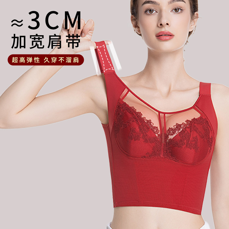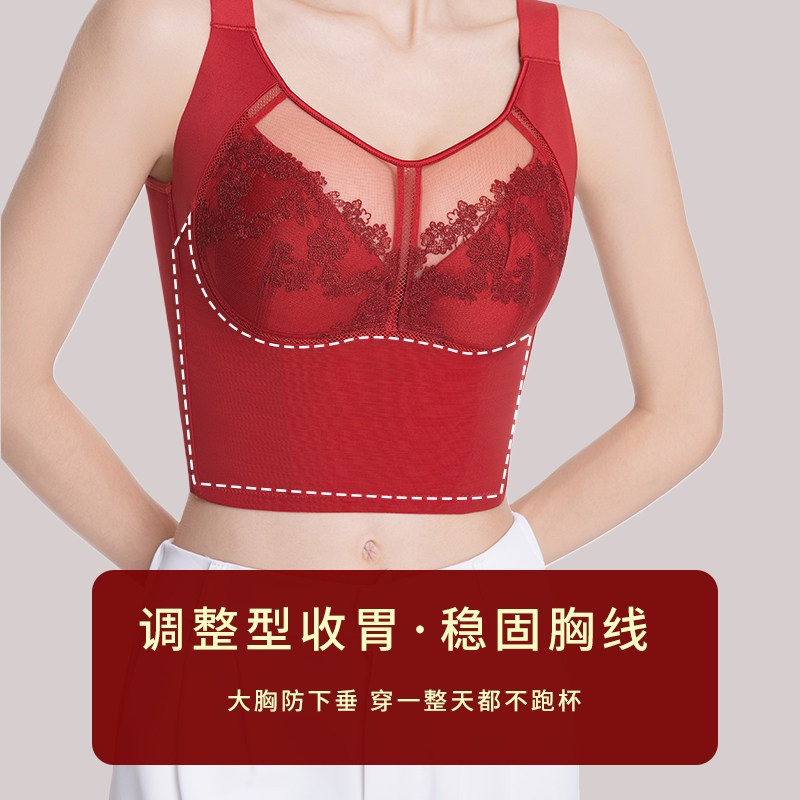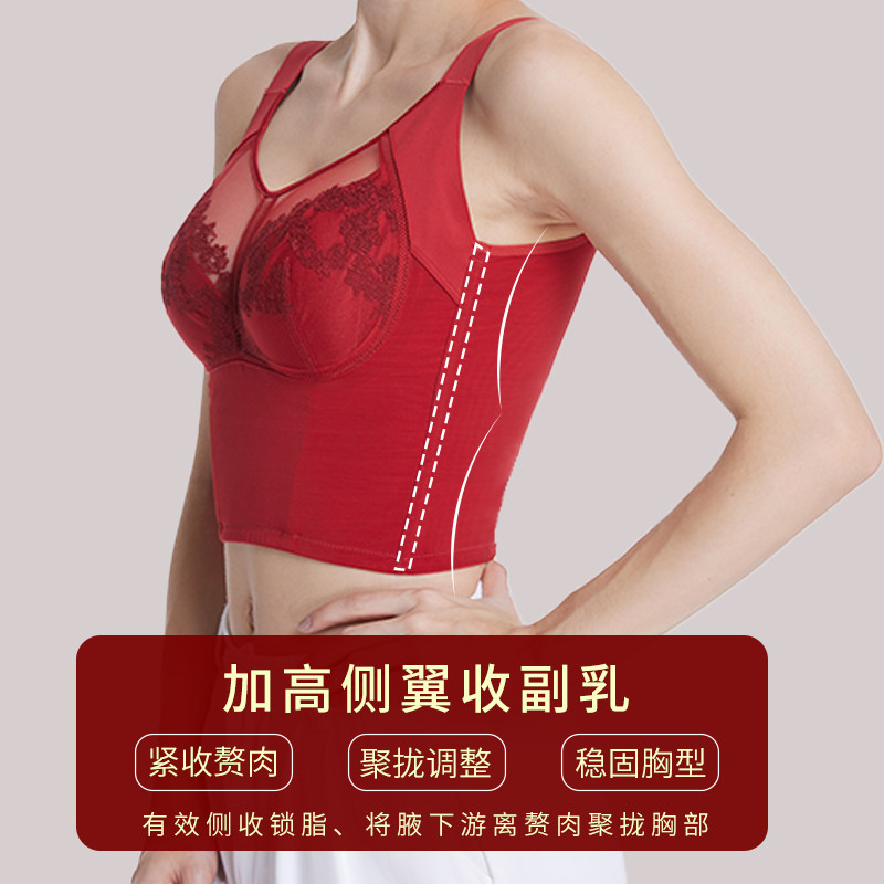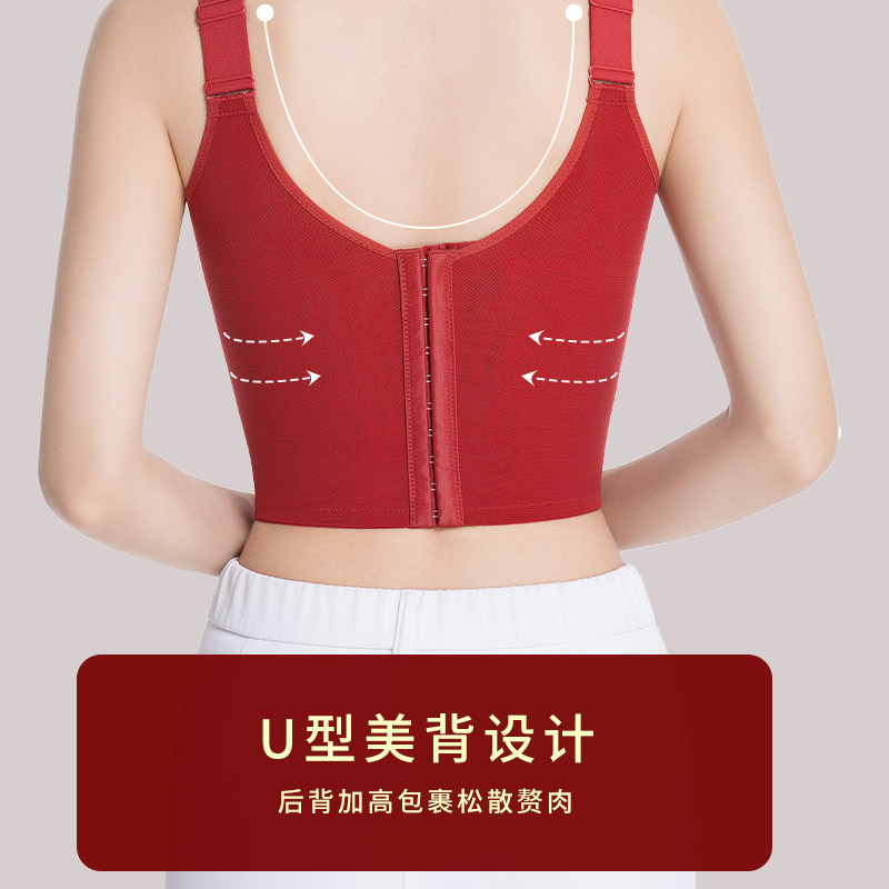 调整型大胸显小内衣女十排扣聚拢上托长文胸收副乳防下垂塑形胸罩