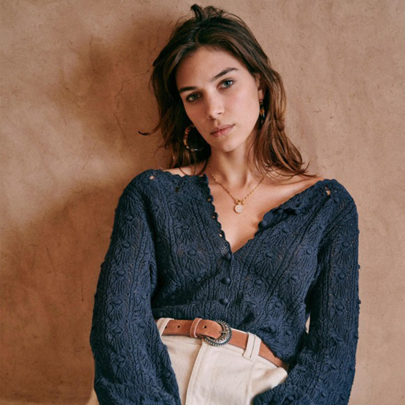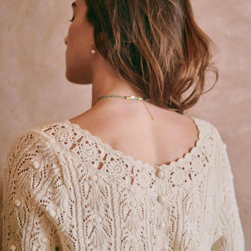 现货2021夏天法式小众棉复古奶奶风手工镂空钩花纽扣针织开衫上衣