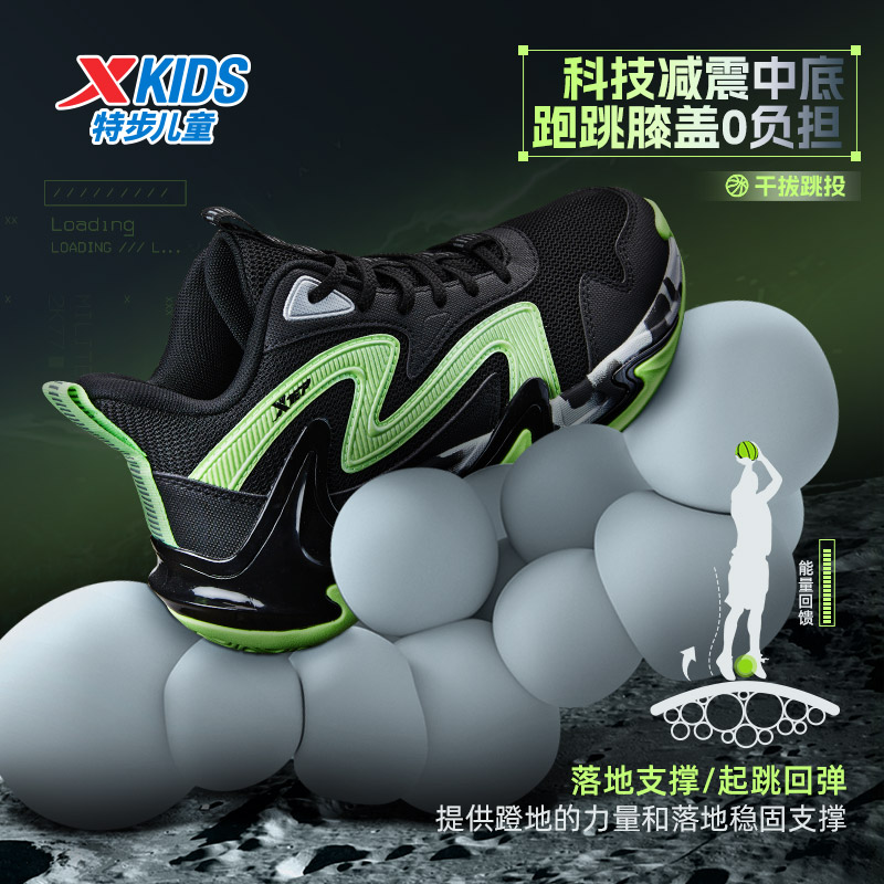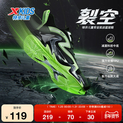 特步童鞋儿童男童秋季新款软底舒适篮球鞋中大童潮流休闲鞋运动鞋